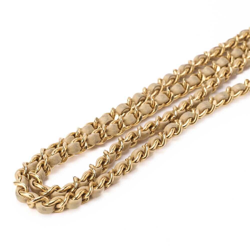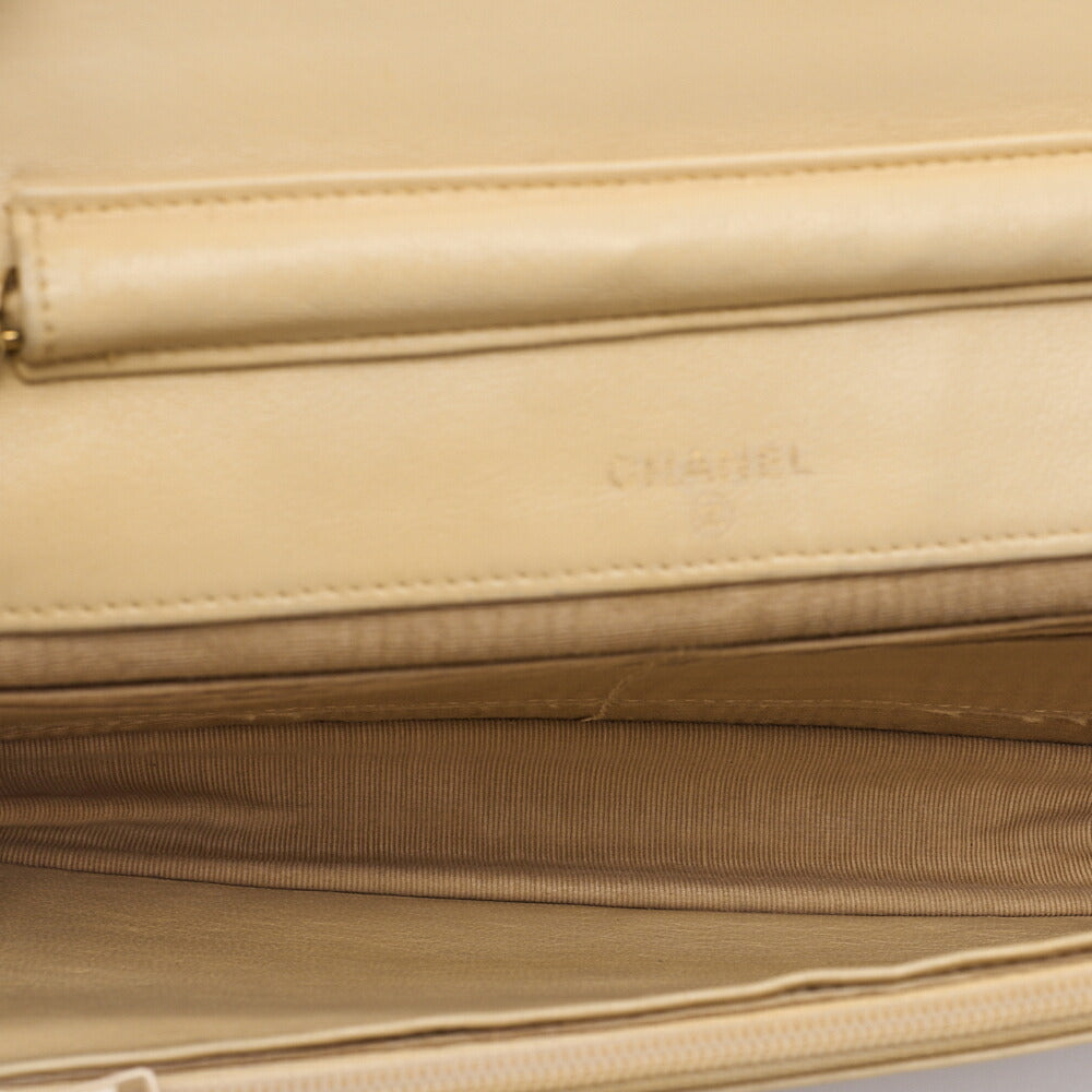 Pre-Owned Schultertasche Kette Geldbörse Caviar Skin Beige Gold-Tone Hardware Pre-Owned