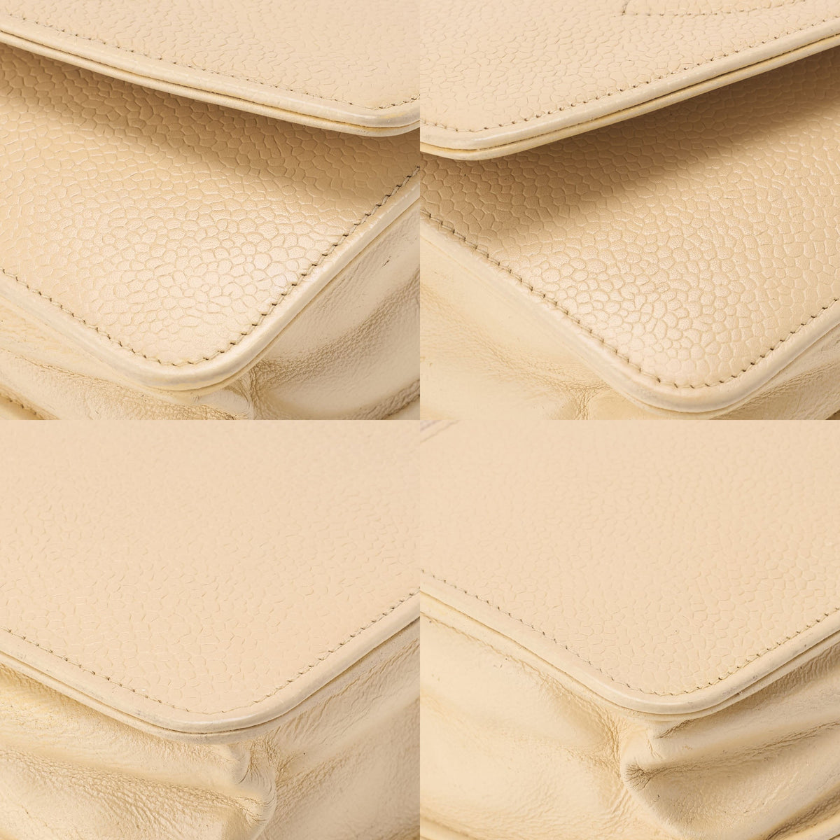 Veredeln Sie Ihren Stil mit der CHANEL Schultertasche mit Ketten-Geldbörse aus luxuriösem Caviar Skin in einem atemberaubenden Beigeton mit eleganten Goldbeschlägen . Dieses exquisite Accessoire vereint Funktionalität mit zeitloser Eleganz und ist ein Must-have für jeden Modebegeisterten.