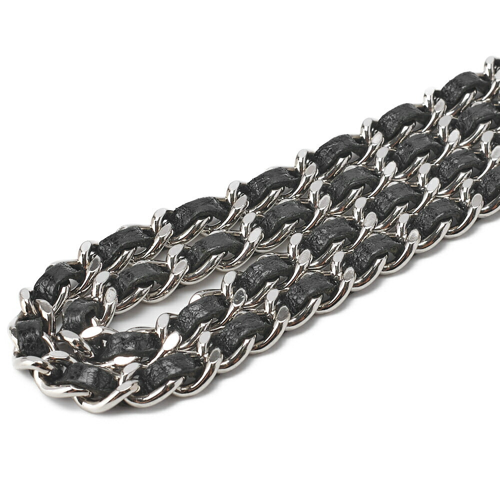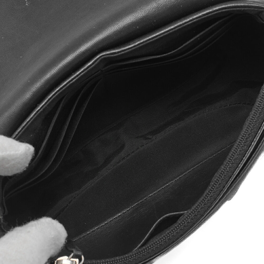 Pre-Owned Schultertasche Kette Geldbörse Lammleder Schwarz Silberfarbene Hardware Pre-Owned