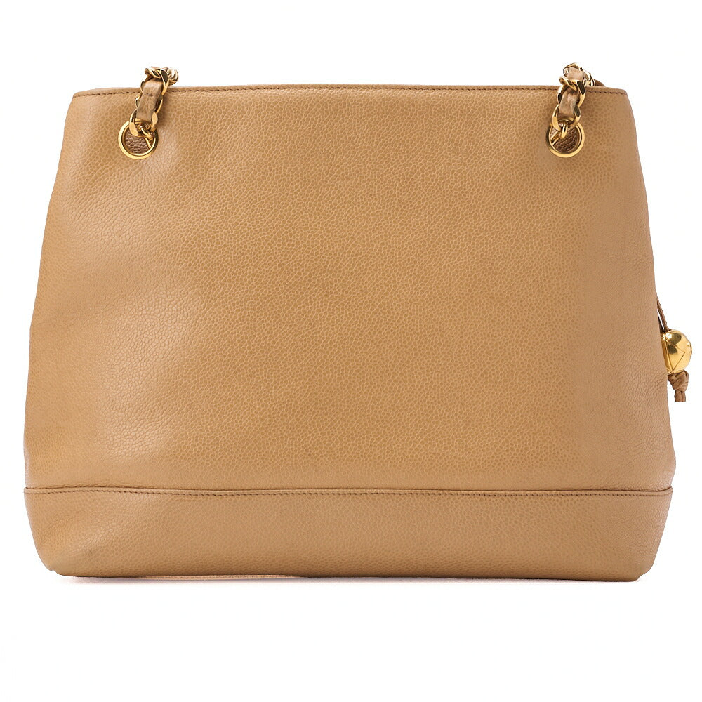 Pre-Owned Shoulder Bag Coco Mark Ball Charm Caviar Skin Black Gold-Tone Hardware, Pre-Owned