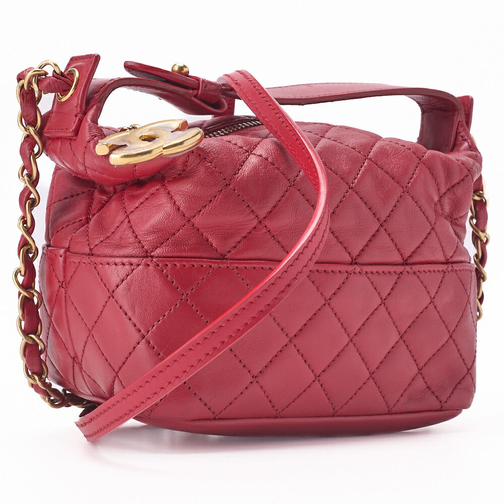 Pre-Owned Schultertasche Handtasche Matelasse Coco Charm 2WAY Lammleder Rot Goldfarbene Hardware Pre-Owned