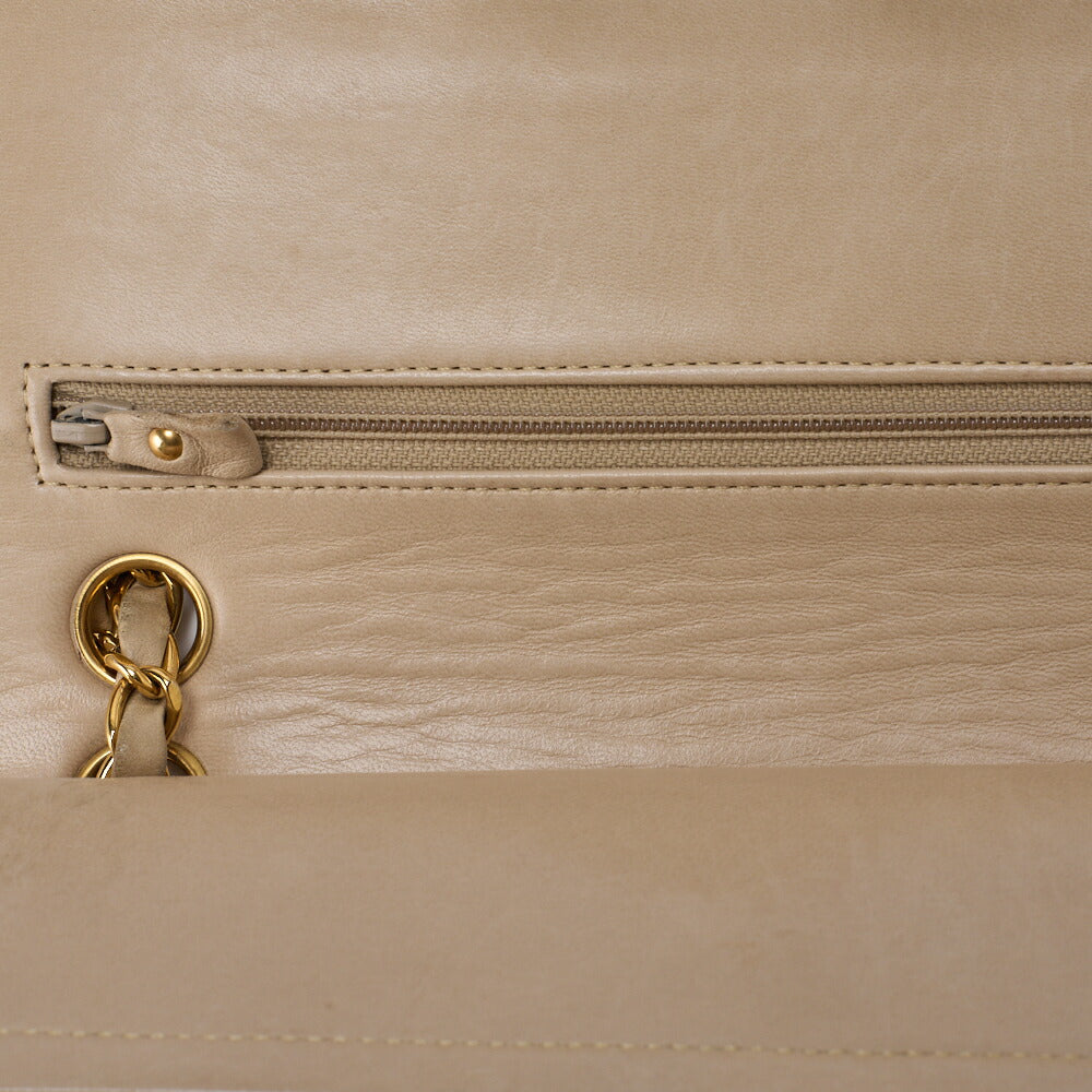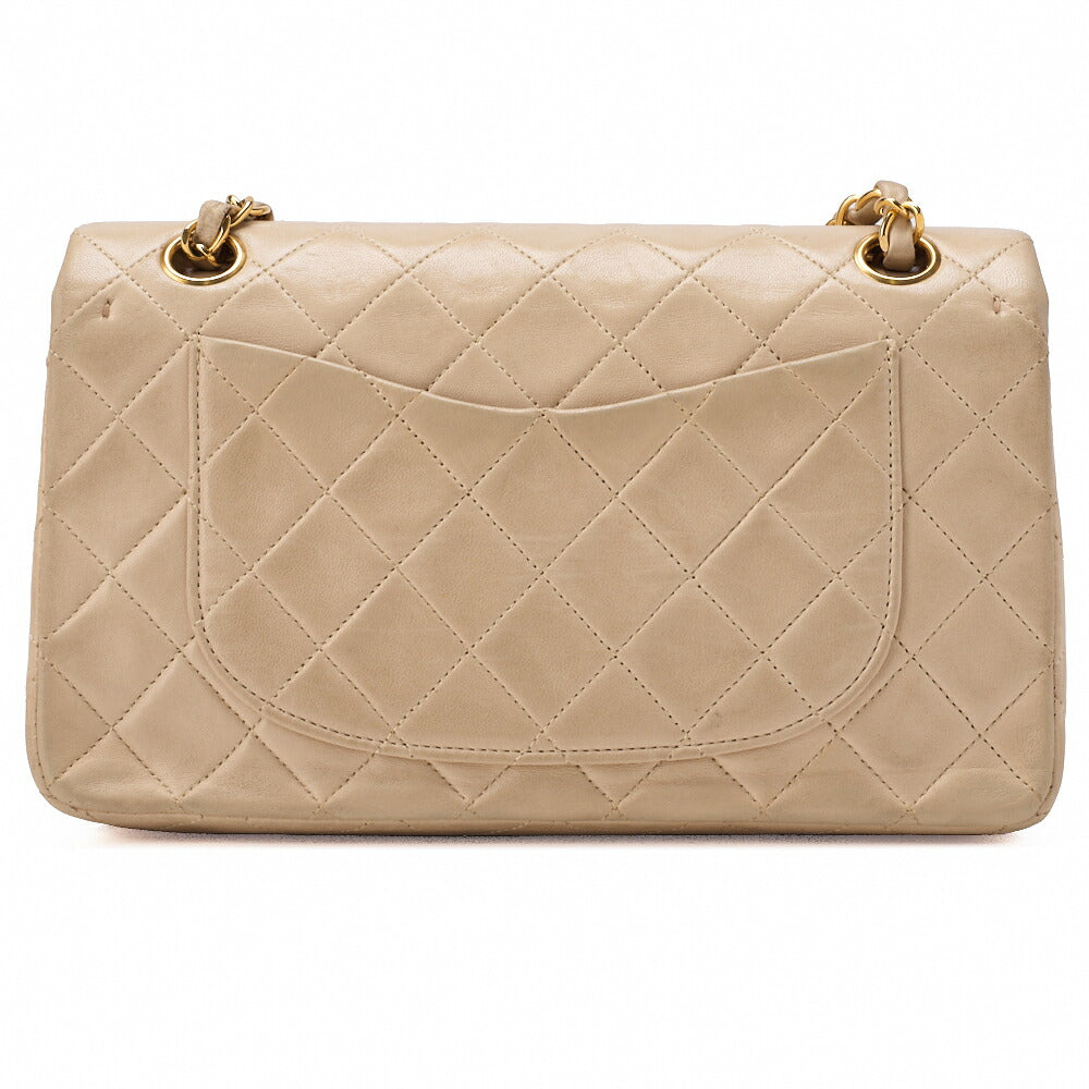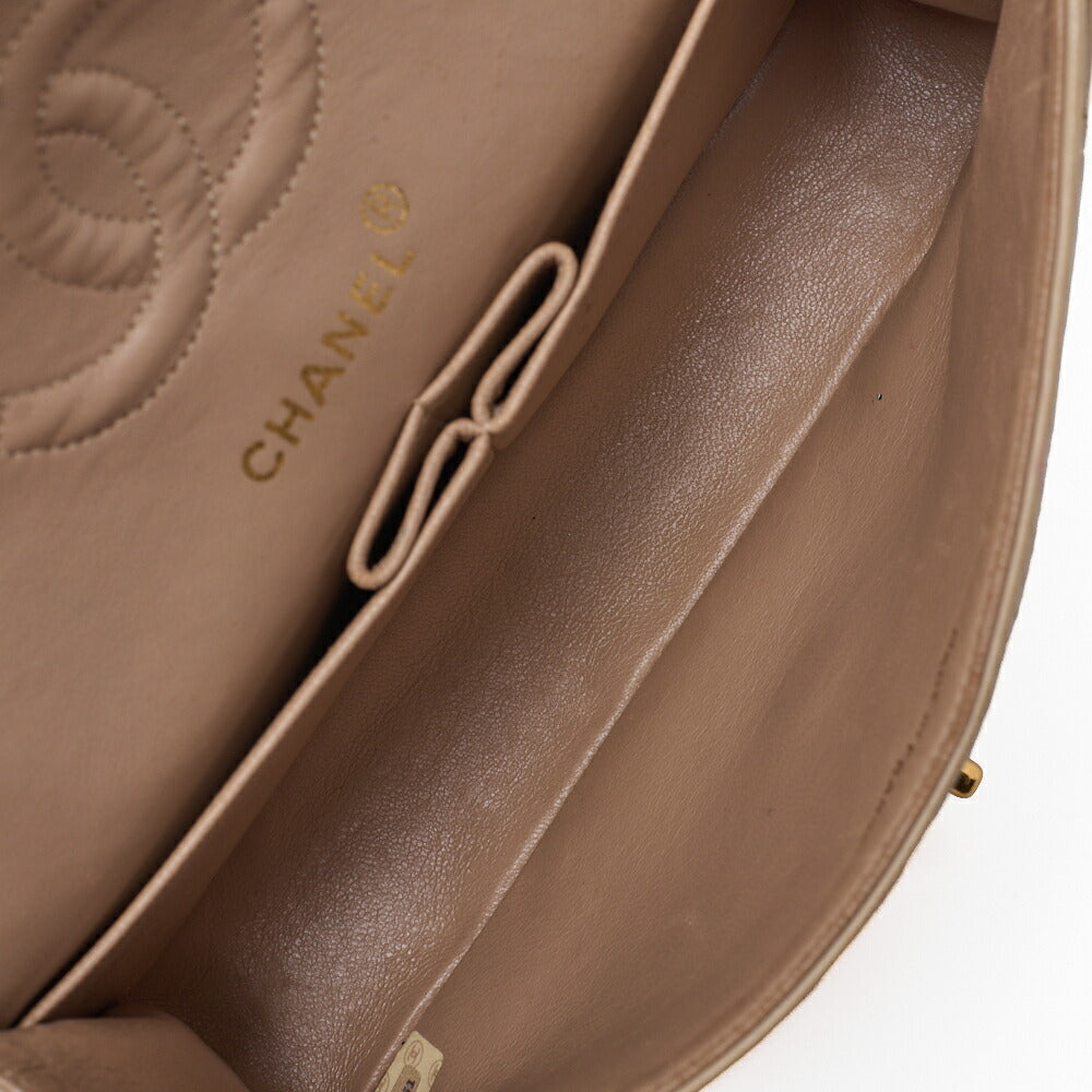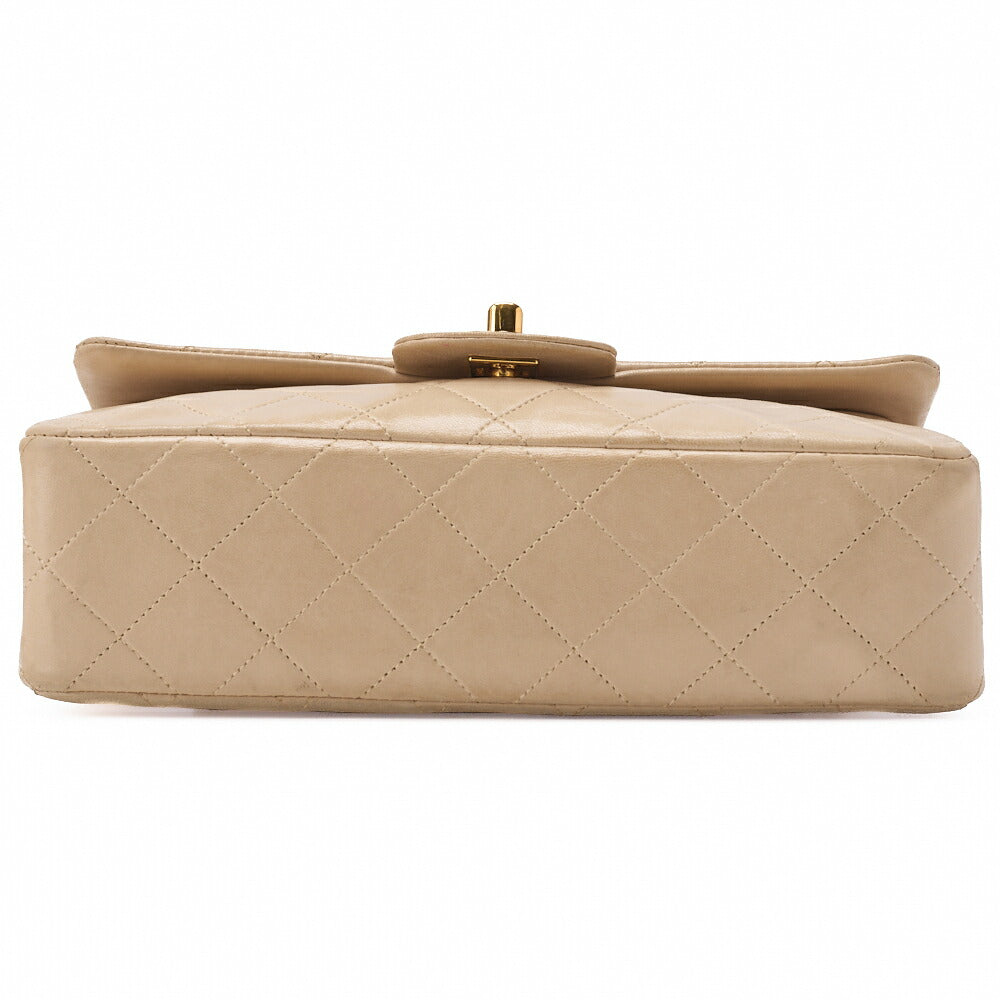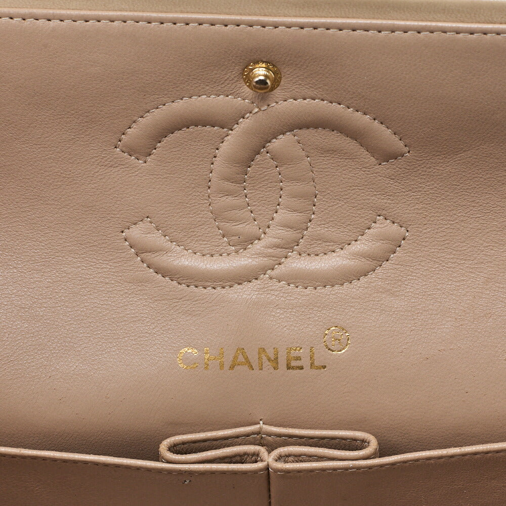 Pre-Owned Schultertasche Matelasse 23 Doppelklappe Kette Lammleder Beige Goldfarbene Hardware Pre-Owned