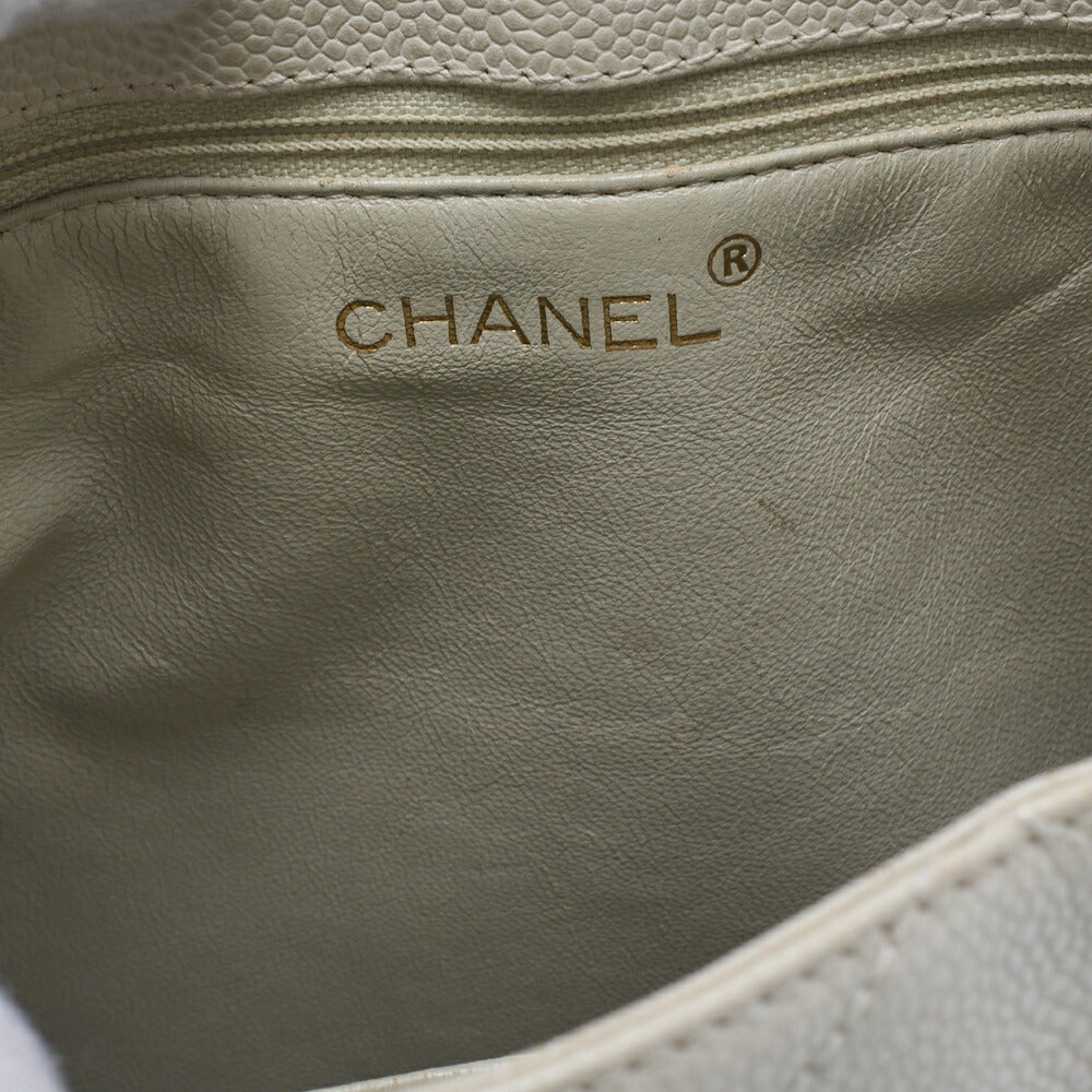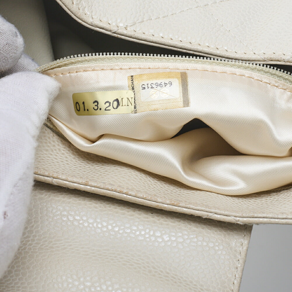 Pre-Owned Schultertasche Matelassé Caviar Skin Elfenbein Goldfarbene Hardware Pre-Owned