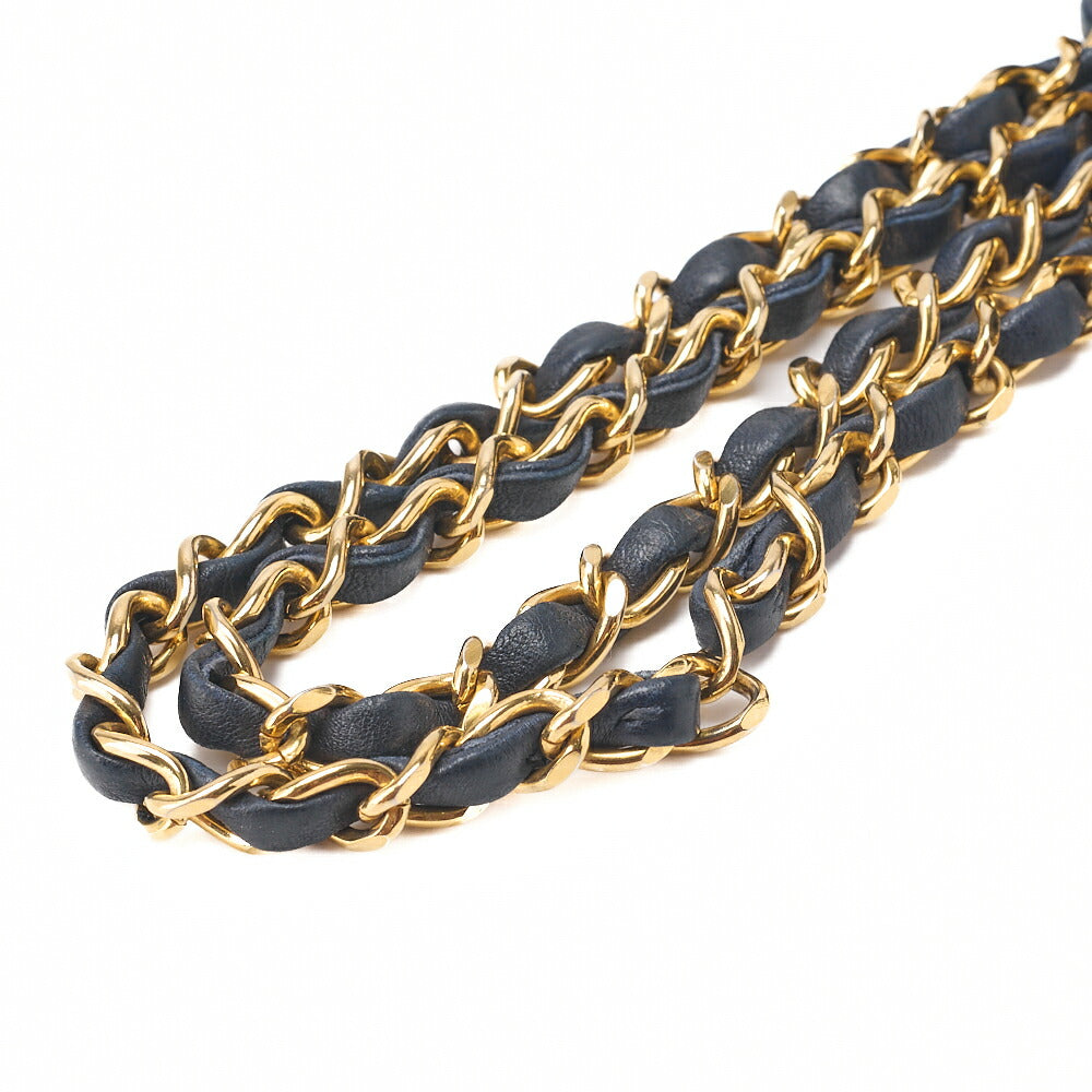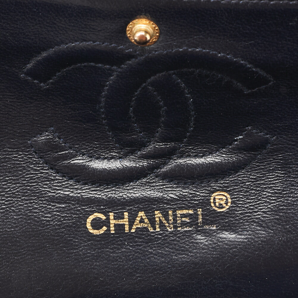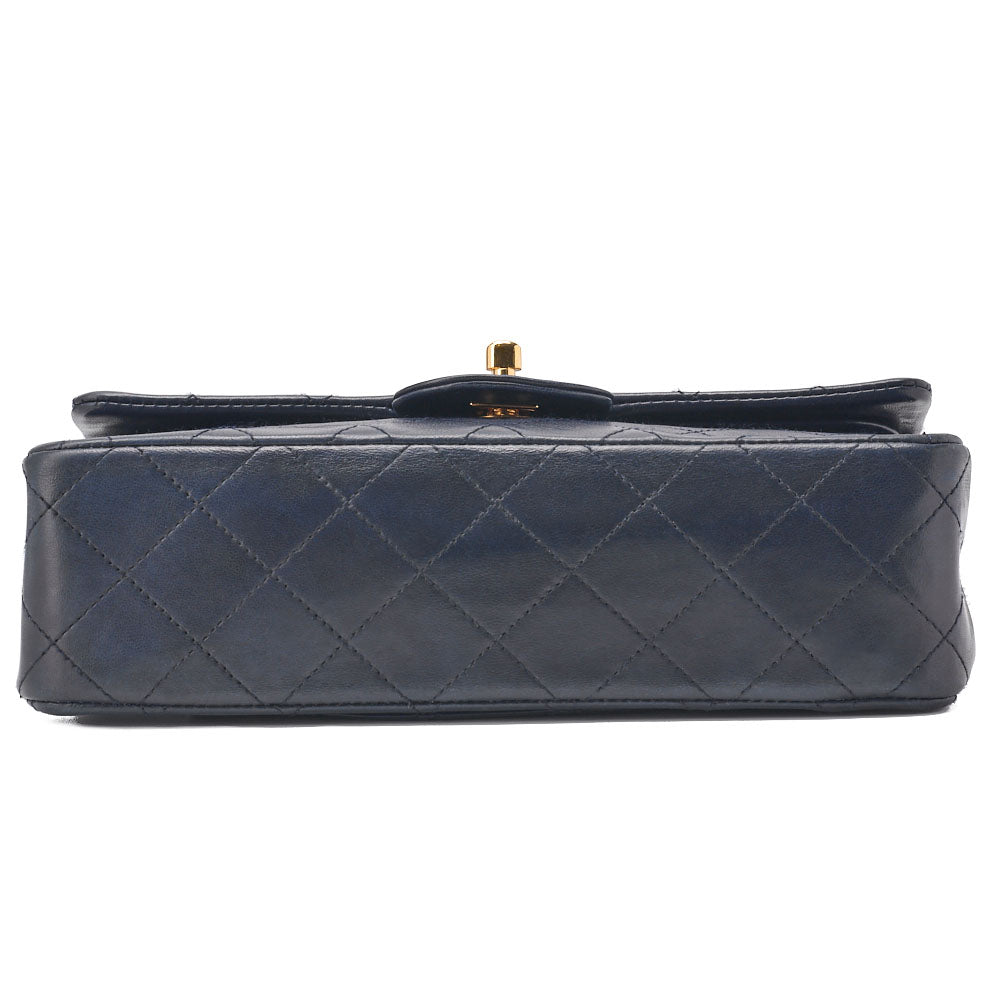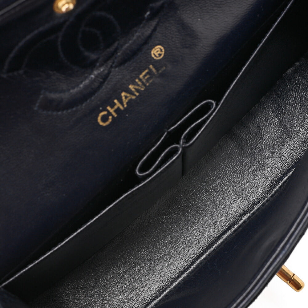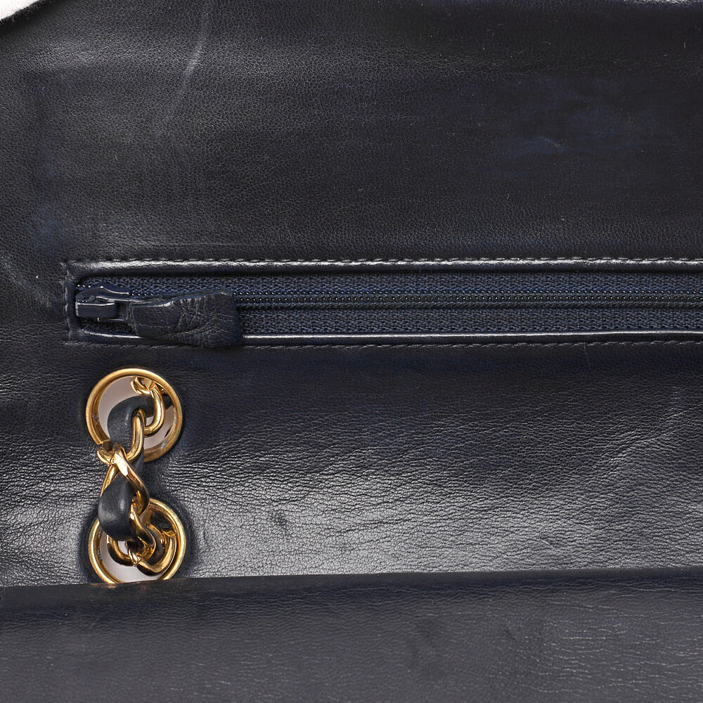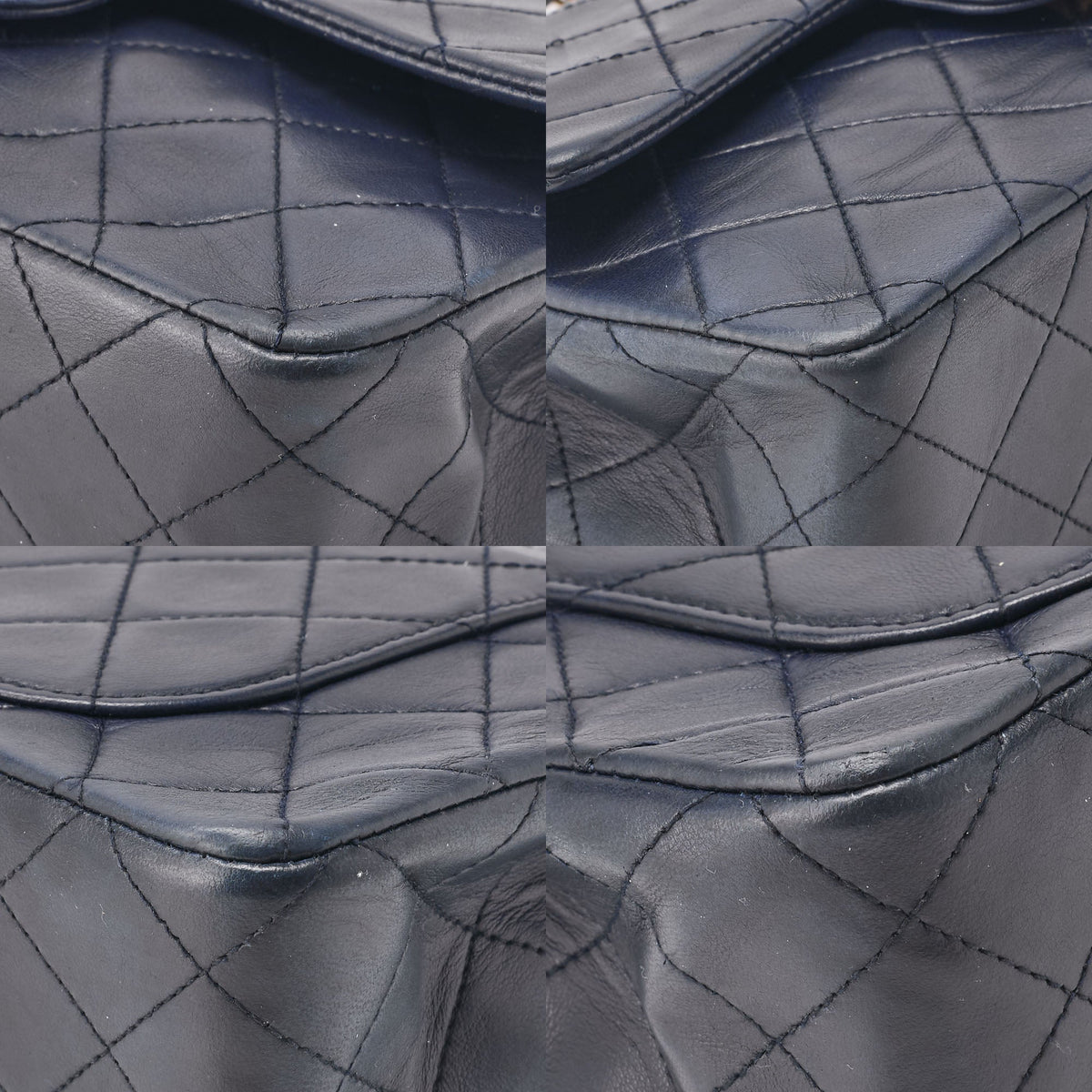 Pre-Owned Schultertasche Matelassé Doppelklappe Lammleder Navy Goldfarbene Hardware Pre-Owned