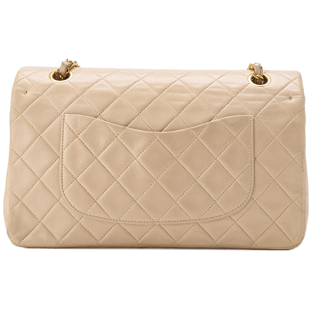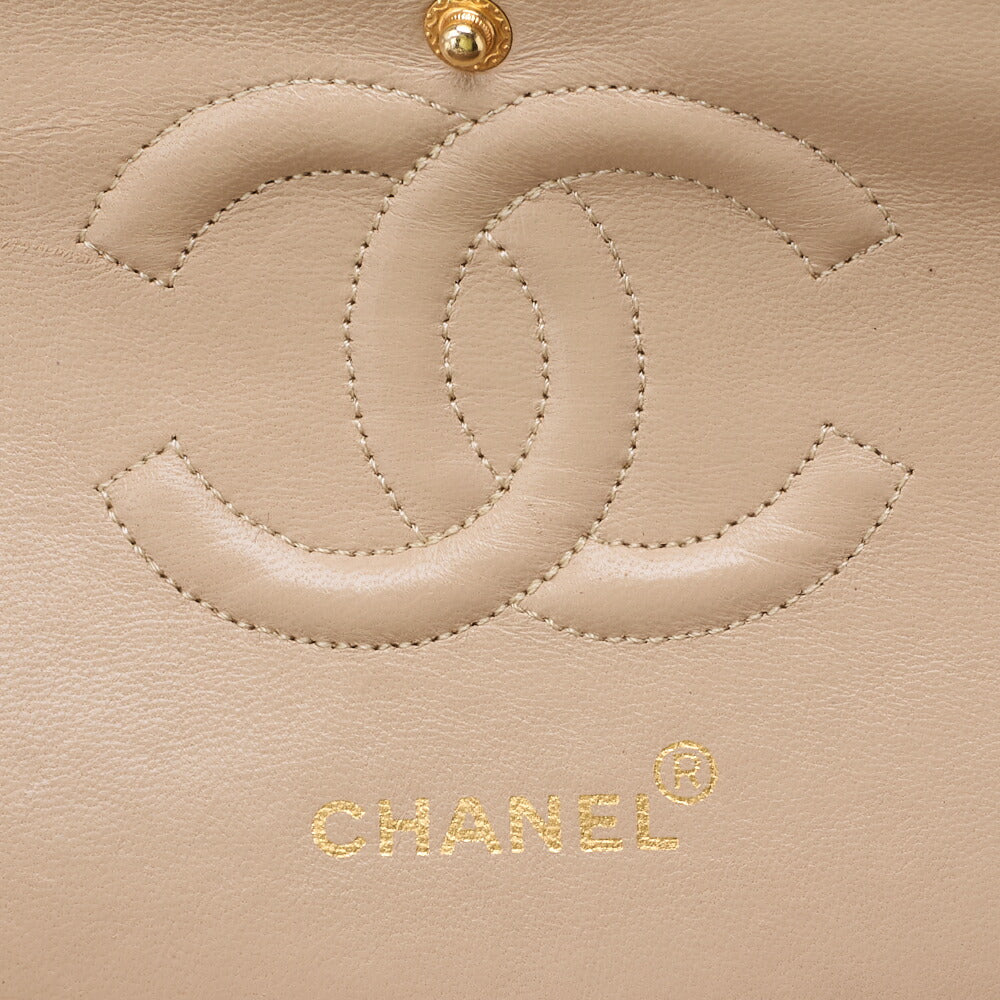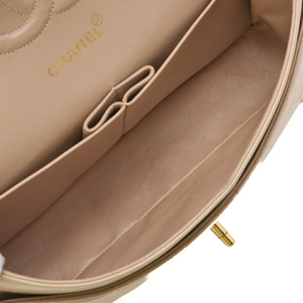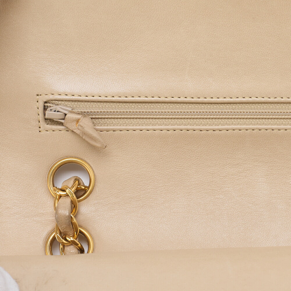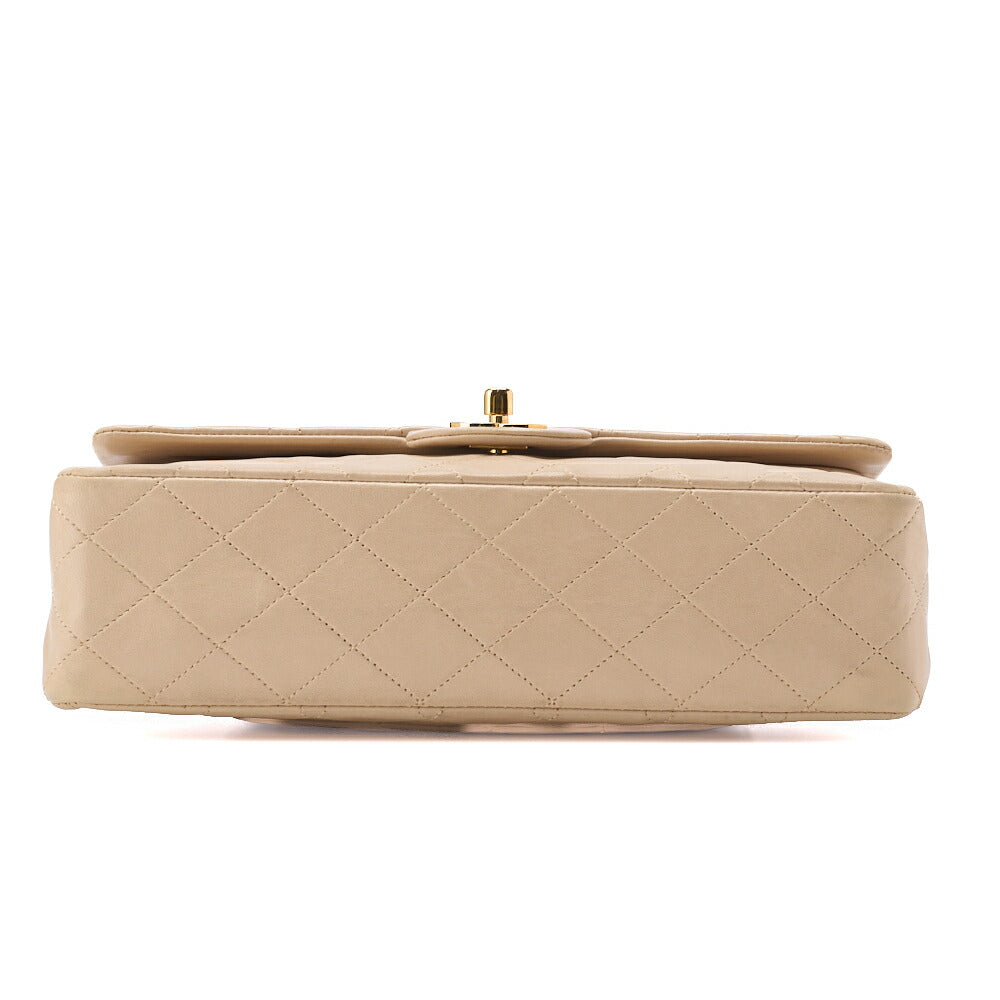 Pre-Owned Schultertasche Matelassé Doppelklappe Lammleder Beige Goldfarbene Hardware Pre-Owned