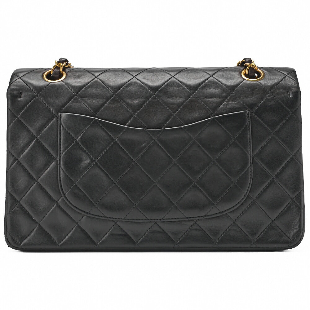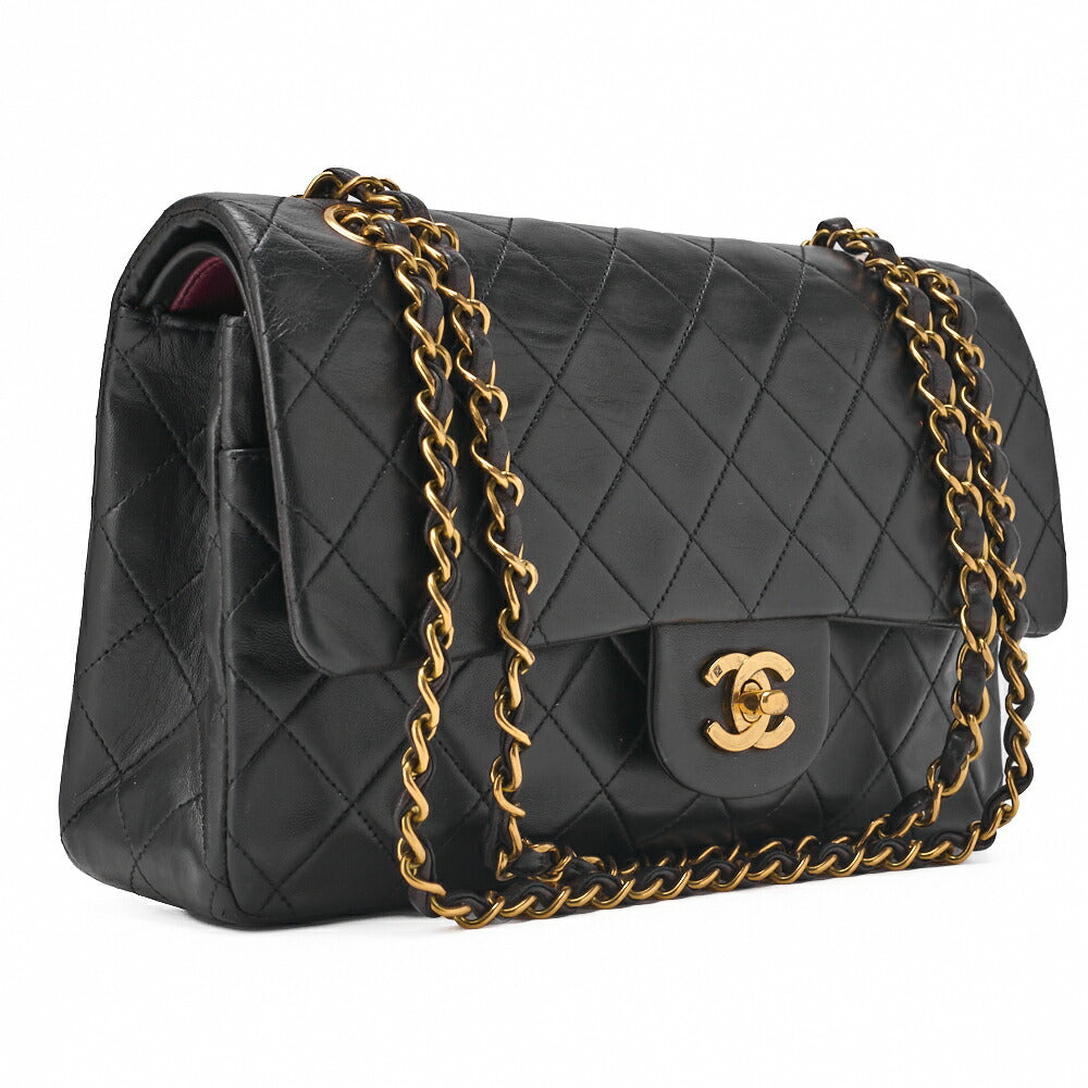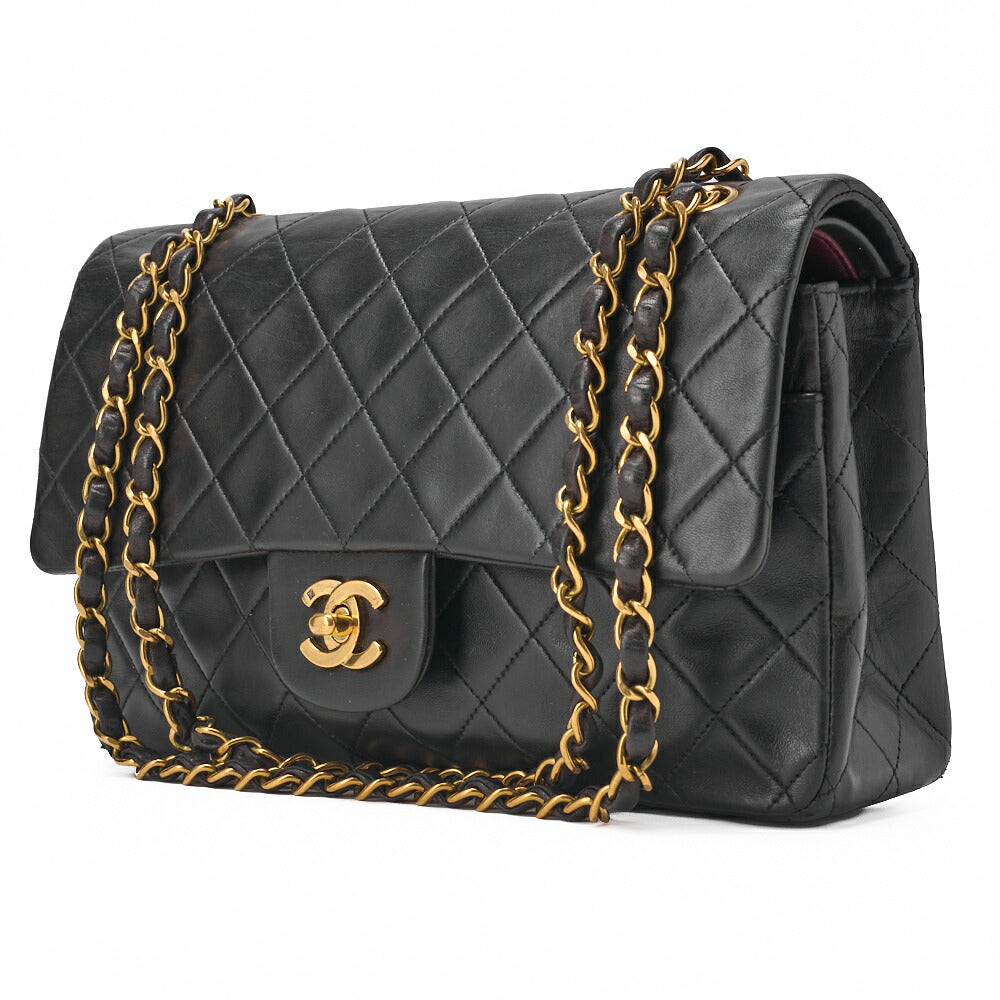 Veredeln Sie Ihren Stil mit der exquisiten CHANEL Chanel Schultertasche Matelassé Double Flap . Dieses atemberaubende 25 cm große Stück ist aus luxuriösem schwarzem Lammleder gefertigt und mit eleganten goldenen Metallbeschlägen verziert, die Raffinesse und Klasse ausstrahlen. Ein Must-have für jede modebewusste Frau: Diese Tasche vereint Funktionalität mit zeitloser Eleganz.