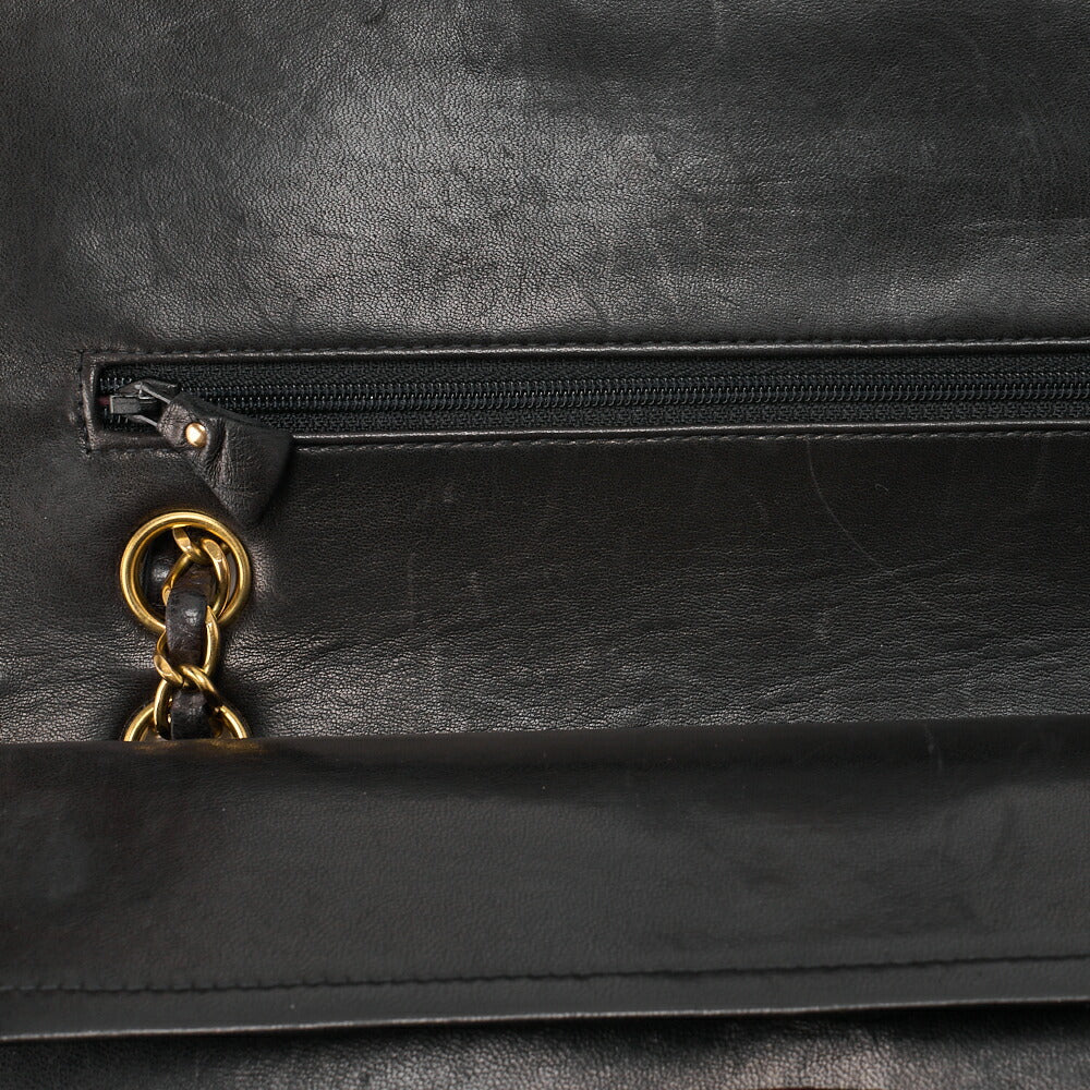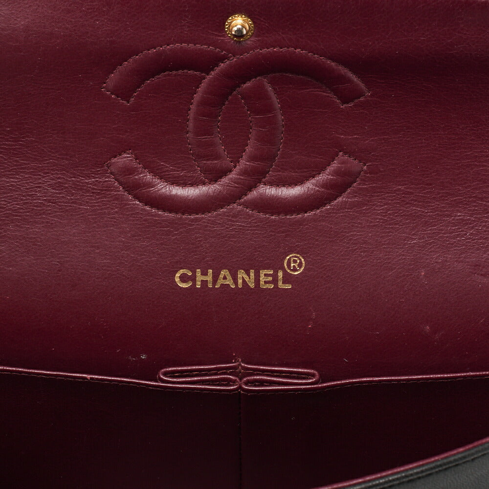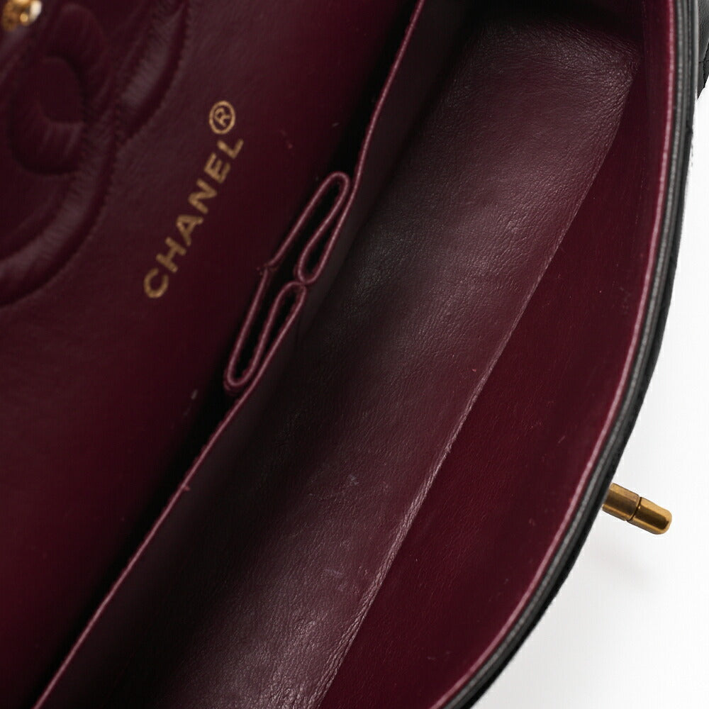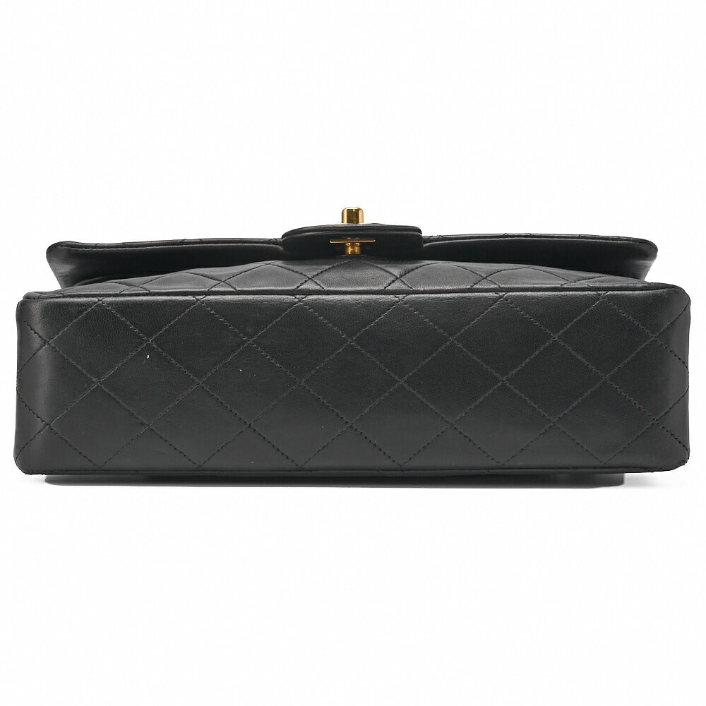 Pre-Owned Schultertasche Matelassé Doppelklappe Lammleder Schwarz Goldfarbene Hardware Pre-Owned