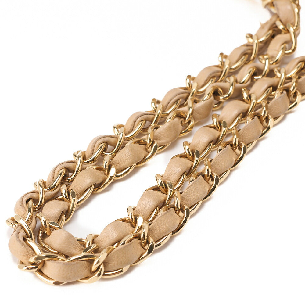 Pre-Owned Schultertasche Matelassé Doppelklappe Lammleder Beige Goldfarbene Hardware Pre-Owned
