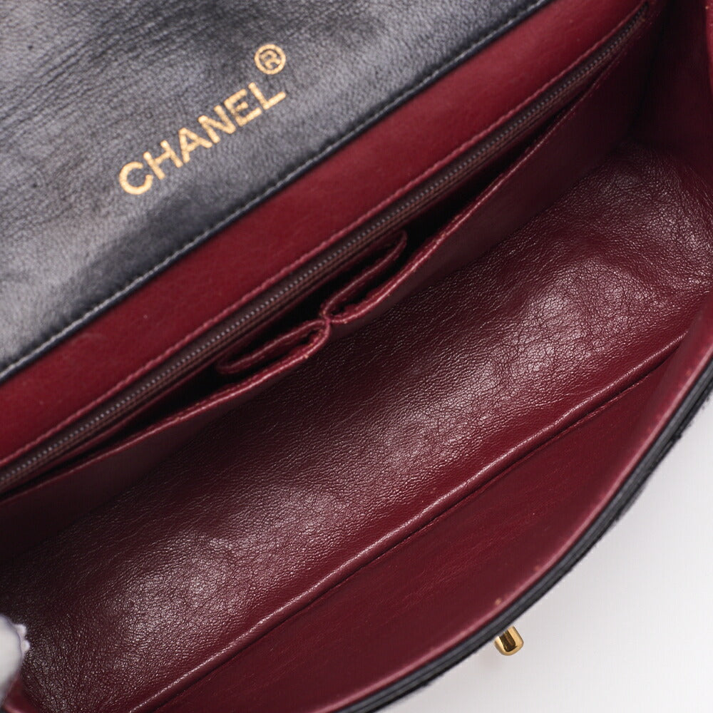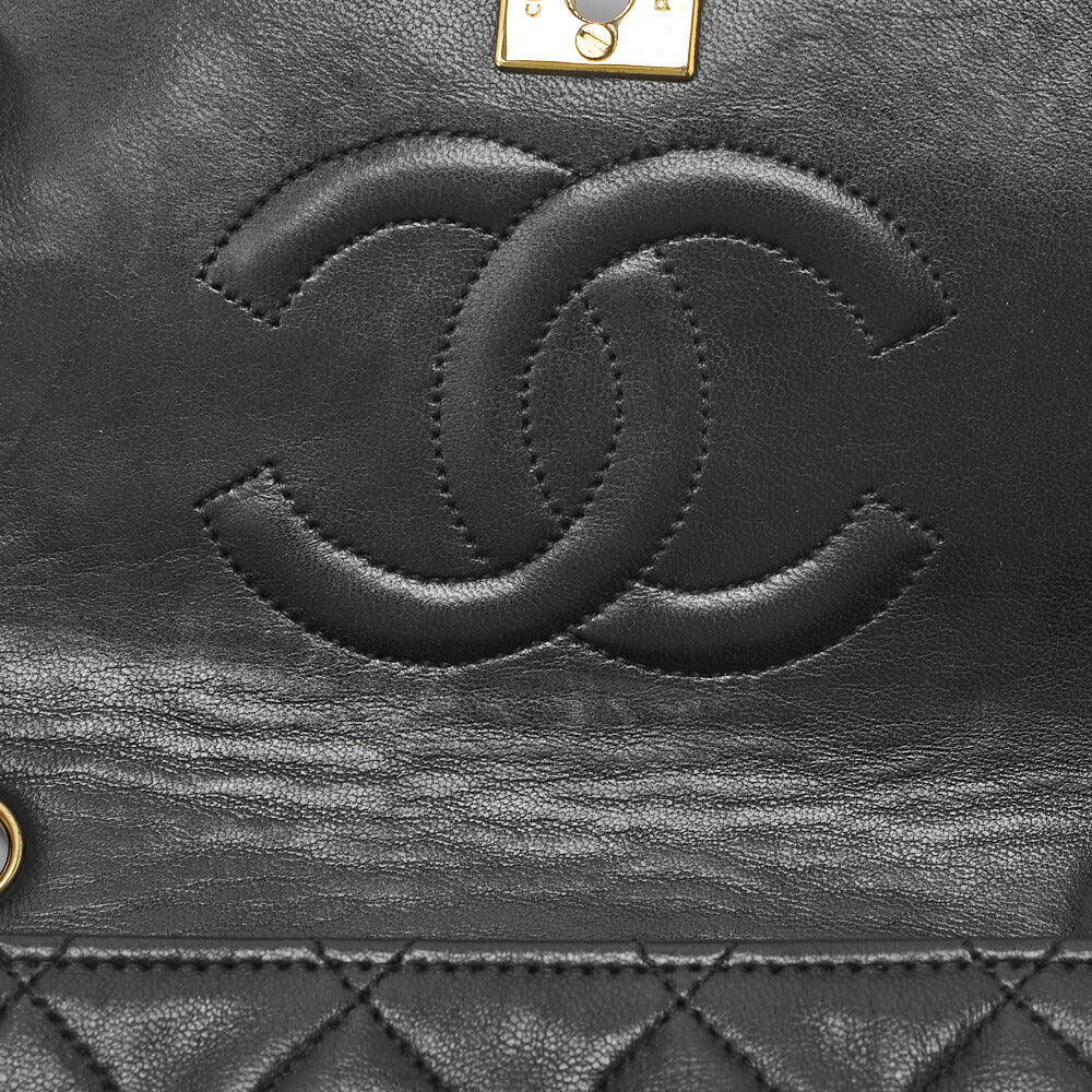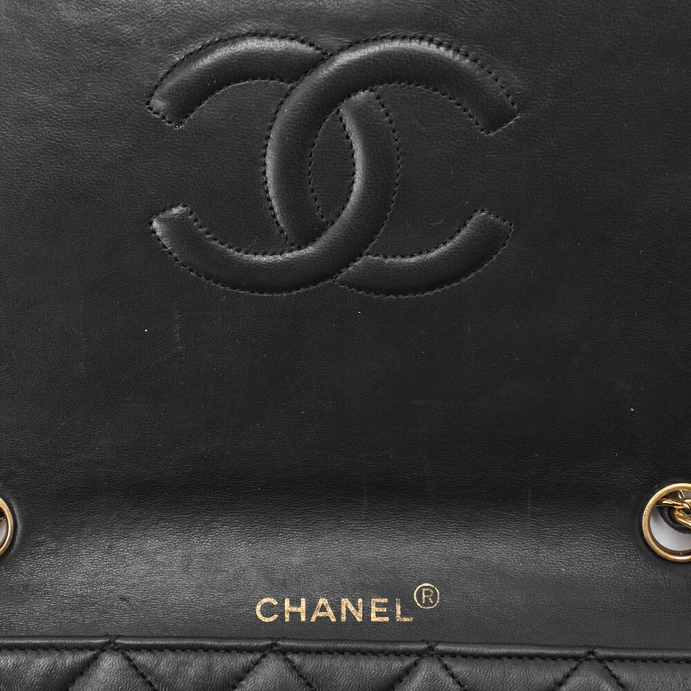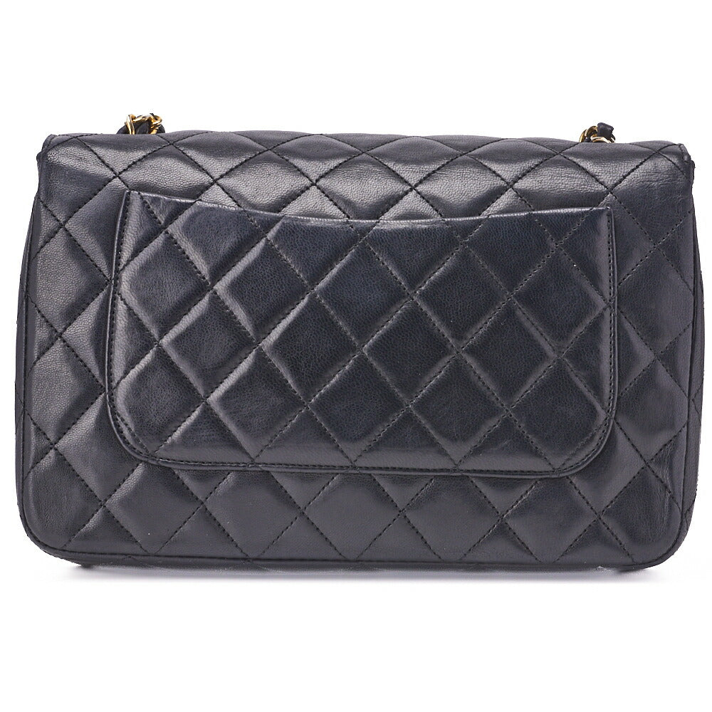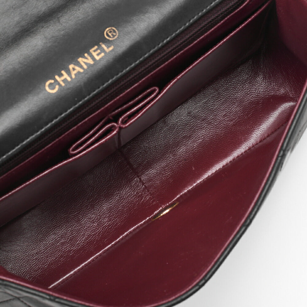 Erweitern Sie Ihre Accessoire-Auswahl mit der CHANEL Chanel Schultertasche Matelassé Lammleder . Dieses exquisite Stück besticht durch die markante Außenseite aus schwarzem Lammleder, ergänzt durch luxuriöse goldene Metallbeschläge, und ist somit eine unverzichtbare Ergänzung Ihrer Garderobe.