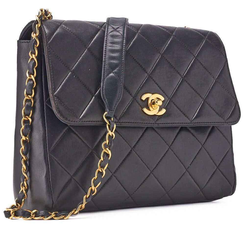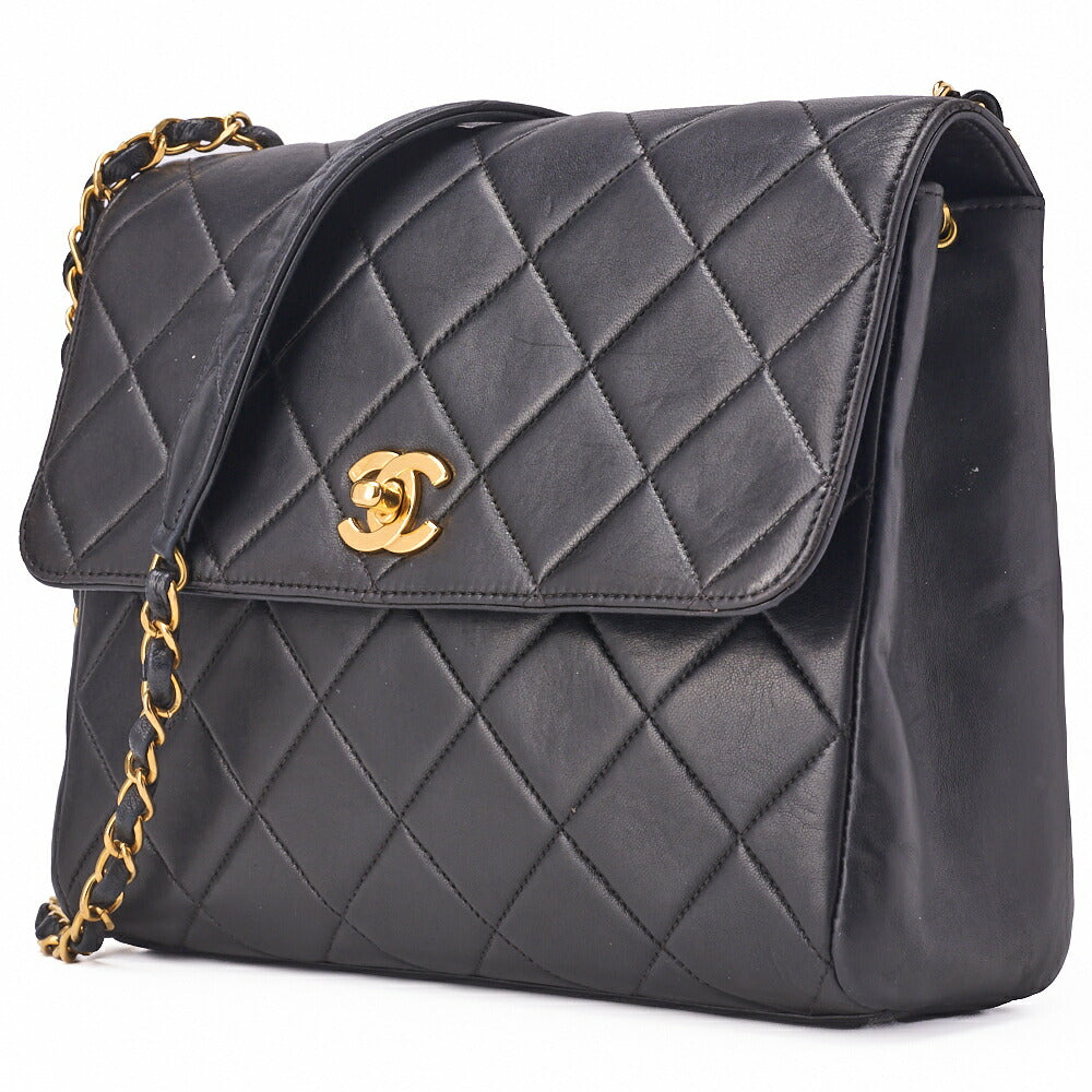 Pre-Owned Schultertasche Matelassé Lammleder Schwarz Goldfarbene Hardware Pre-Owned
