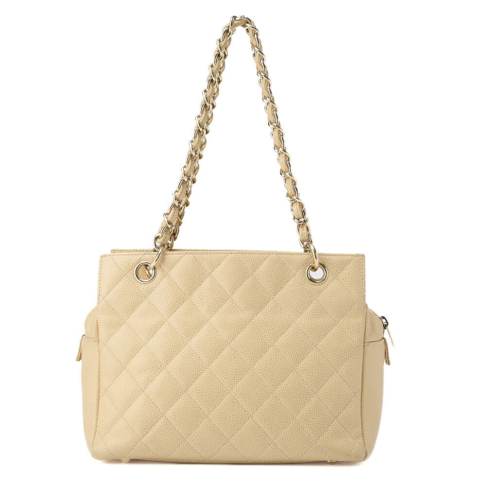 Pre-Owned Schultertasche Matelassé Kaviar Haut Beige Goldfarbene Hardware Pre-Owned