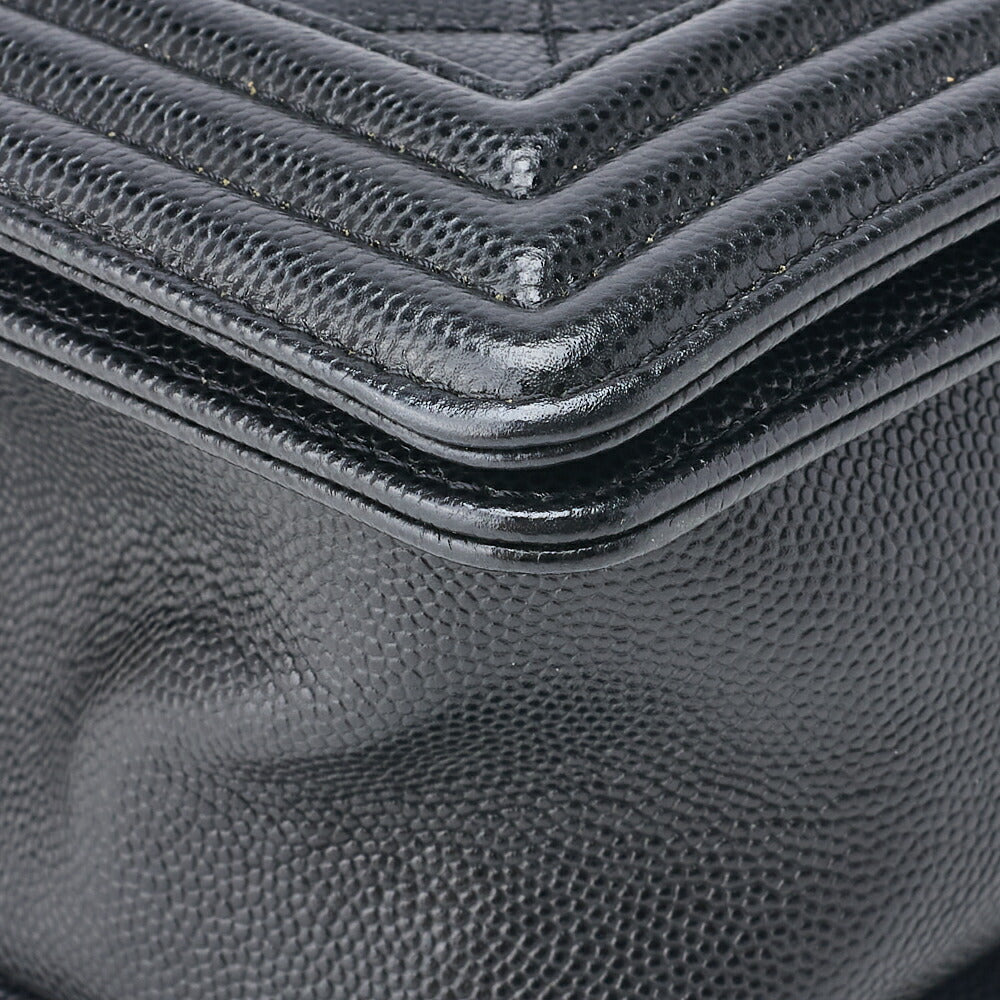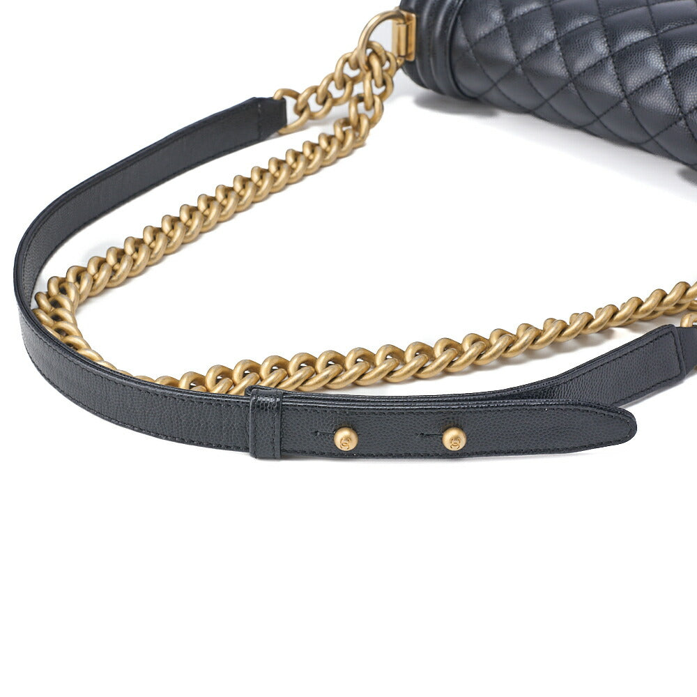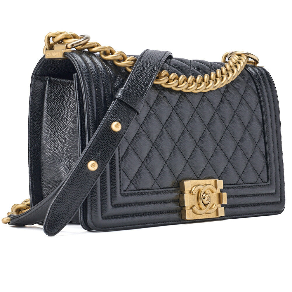 Pre-Owned Schultertasche Matelassé Kaviar Haut Schwarz Goldfarbene Hardware Pre-Owned