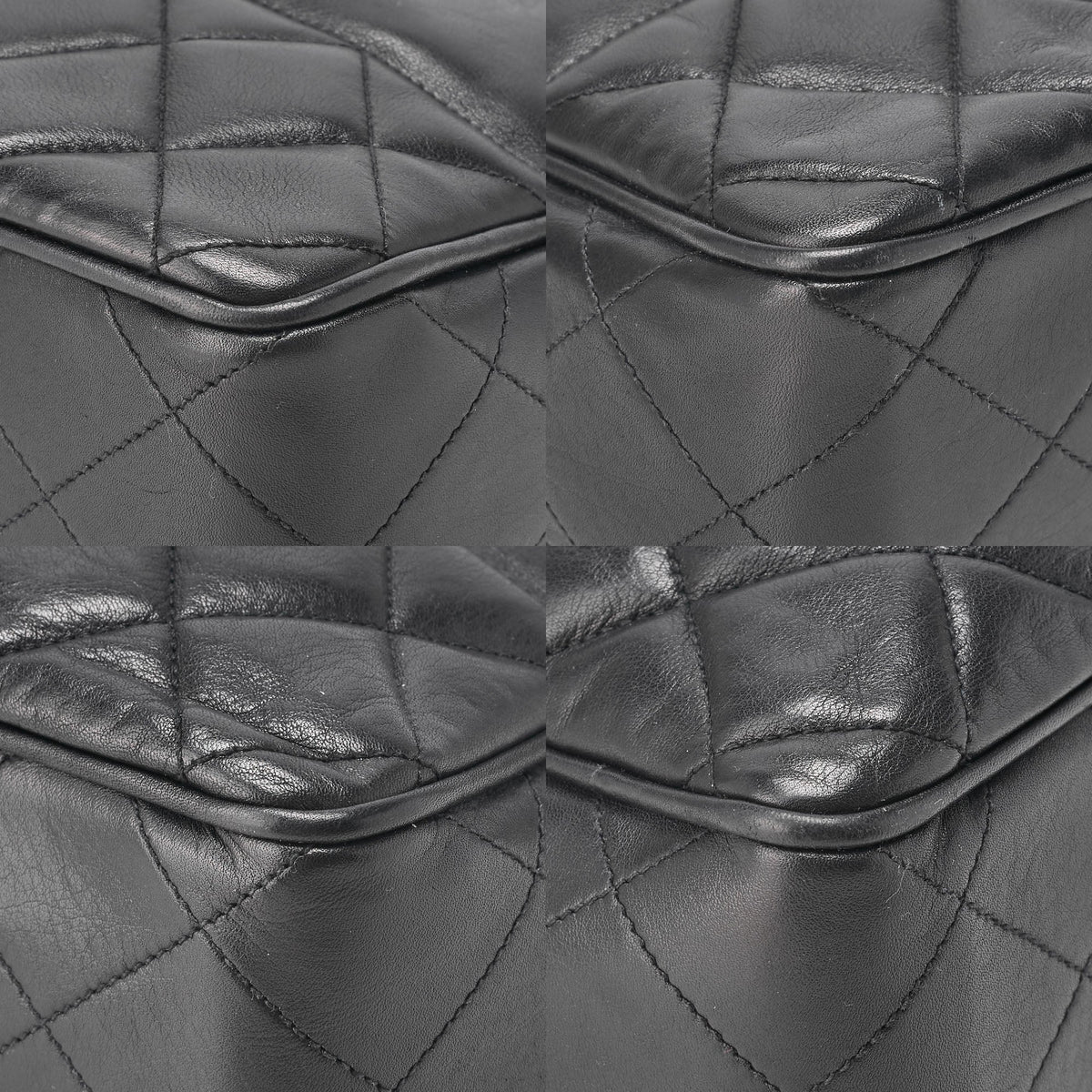 Gebrauchte Schultertasche Triple Coco Doppelkette Schulter Caviar Skin Schwarz Goldfarbene Hardware Gebraucht
