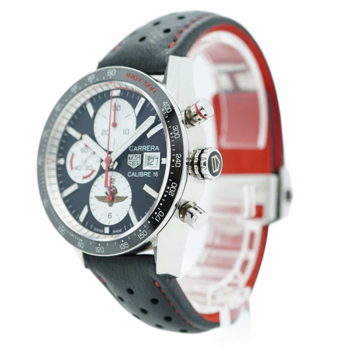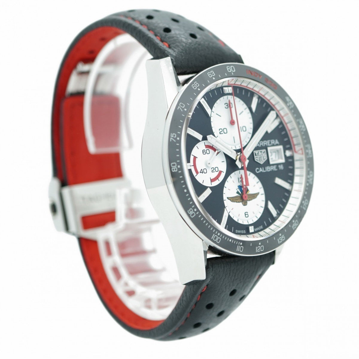 Gebrauchte TAG Heuer Carrera Calibre 16 Indy 500 CV201AS Herrenuhr mit schwarzem Zifferblatt