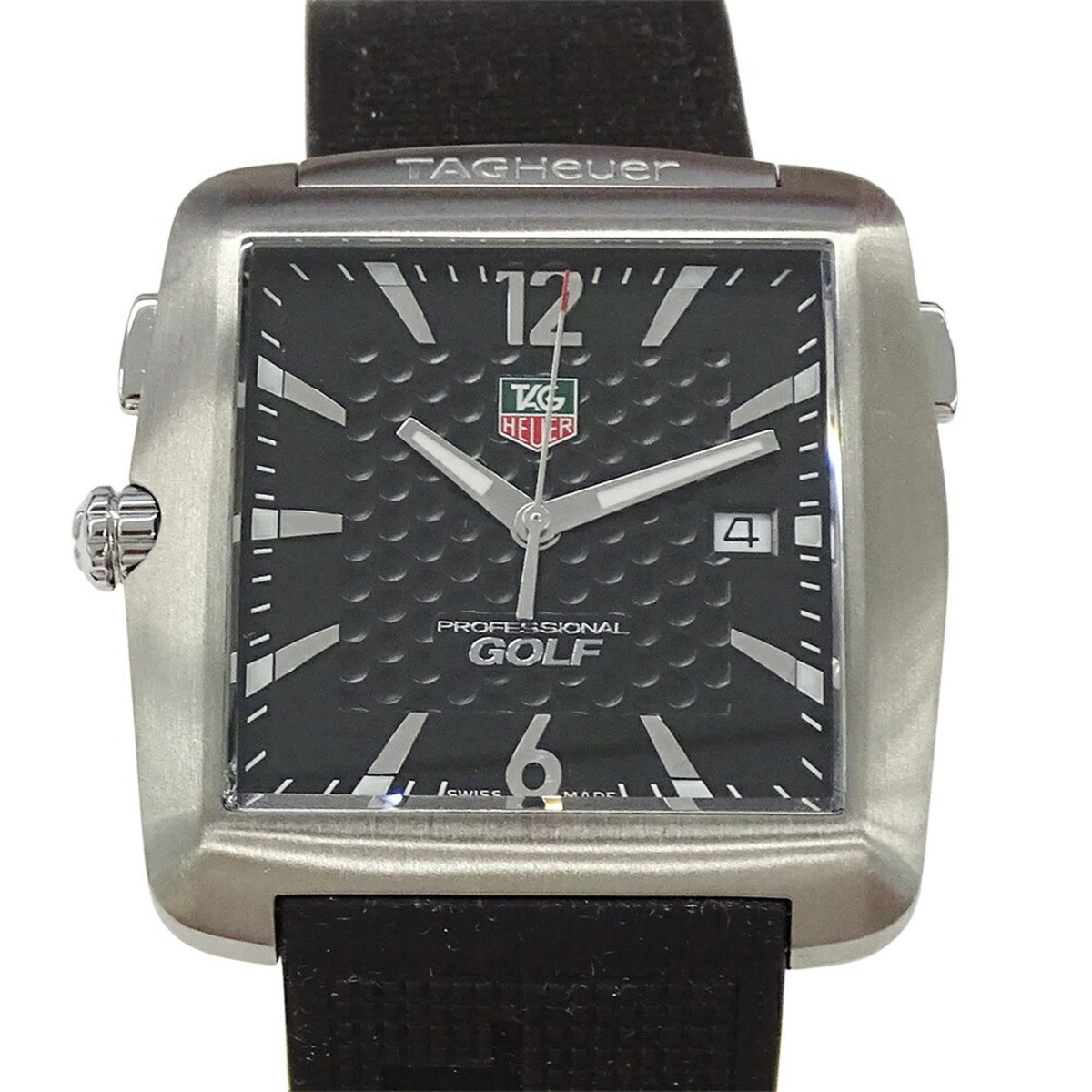 Pre-Owned TAG Heuer Professional Golf Watch WAE1111 FT6004 Men's Tiger Woods Design Quartz Movement with Date Display, Stainless Steel and Rubber Case, Polished