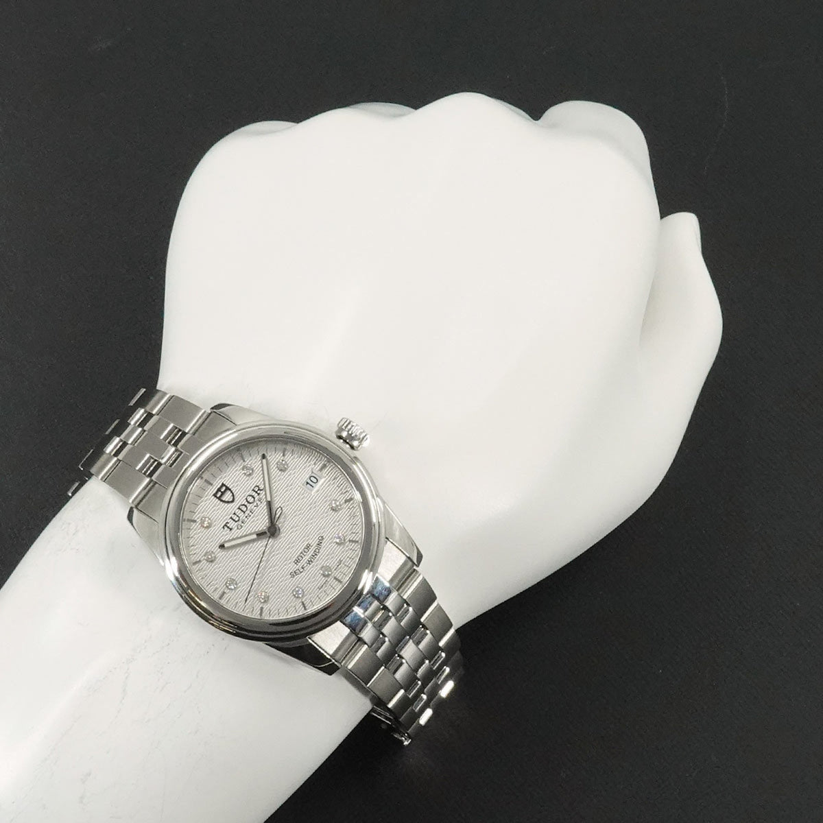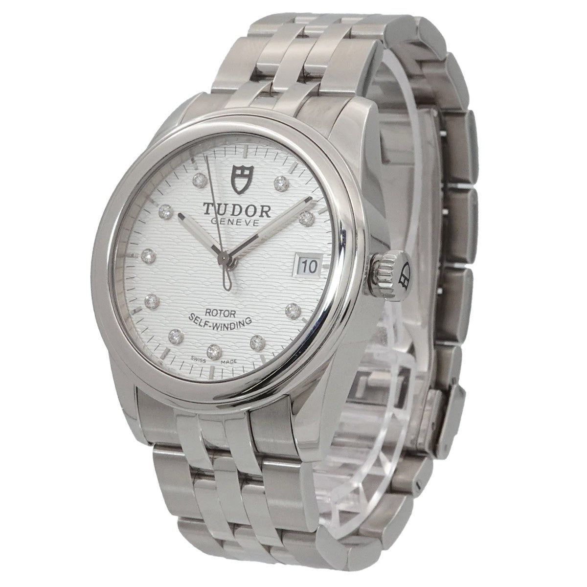 Pre-Owned Tudor Glamour Date 55000 Men's Watch with 10 Diamonds, Date, Silver, Automatic