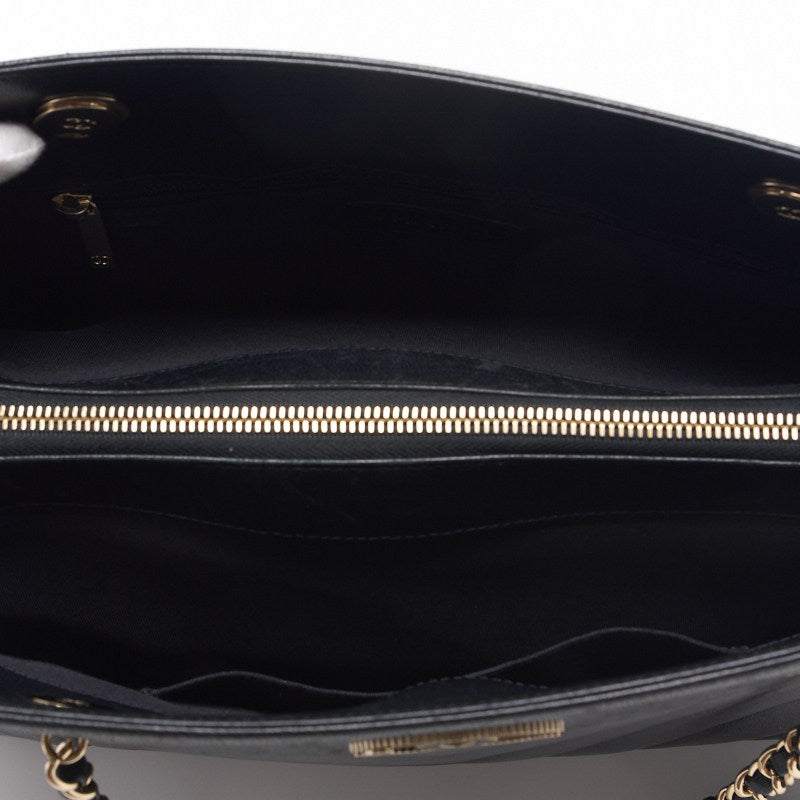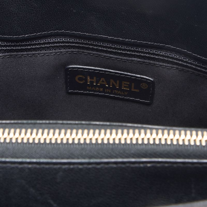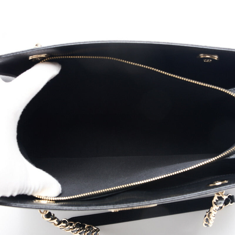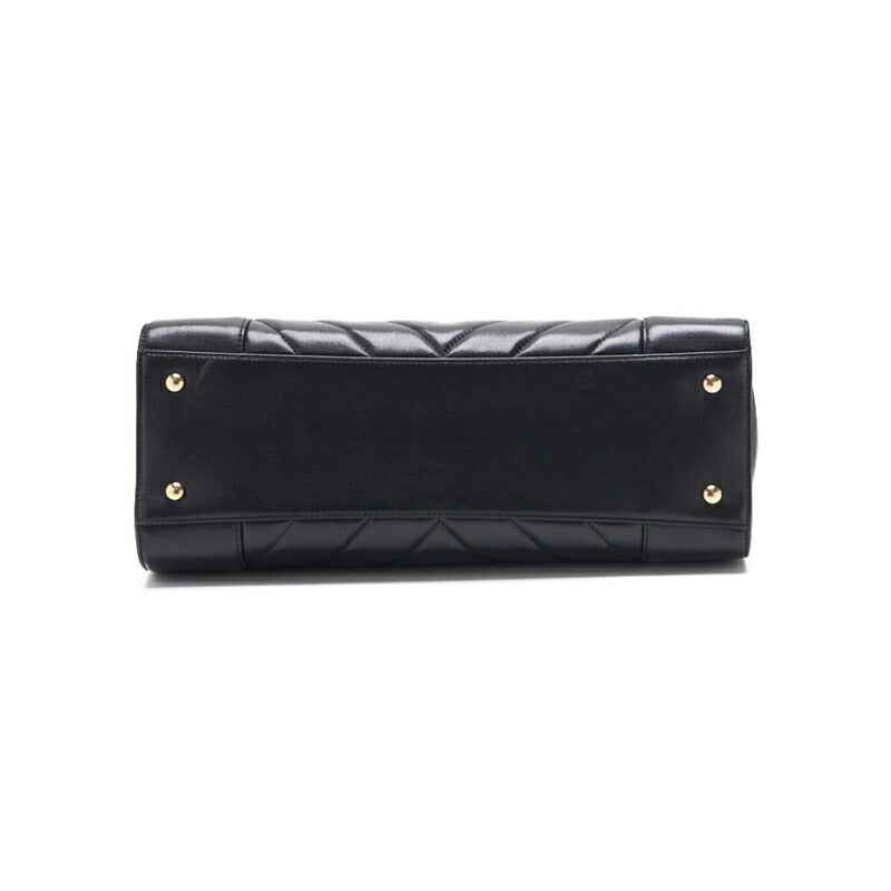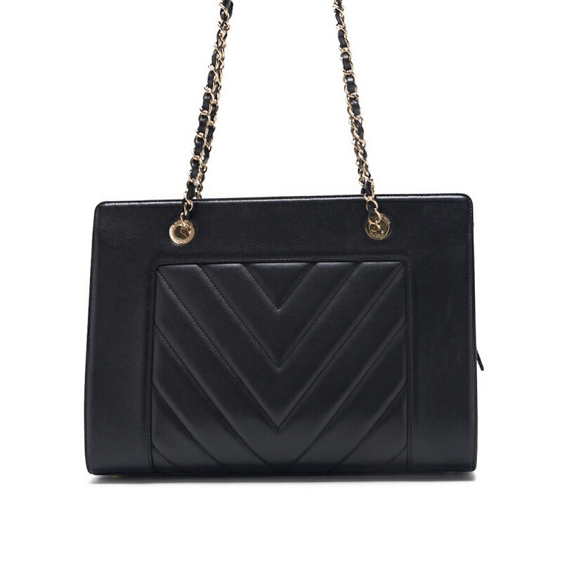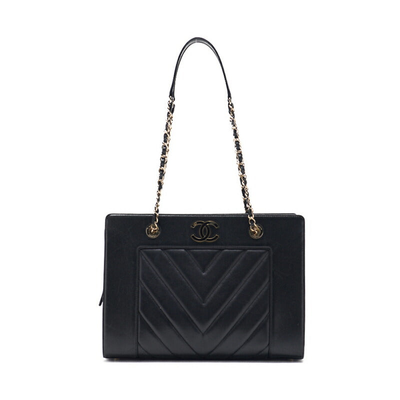 Gebrauchte Umhängetasche, V-Stitch Deca Coco, Doppelkette, Lammleder, Schwarz, Goldfarbene Hardware, Gebraucht