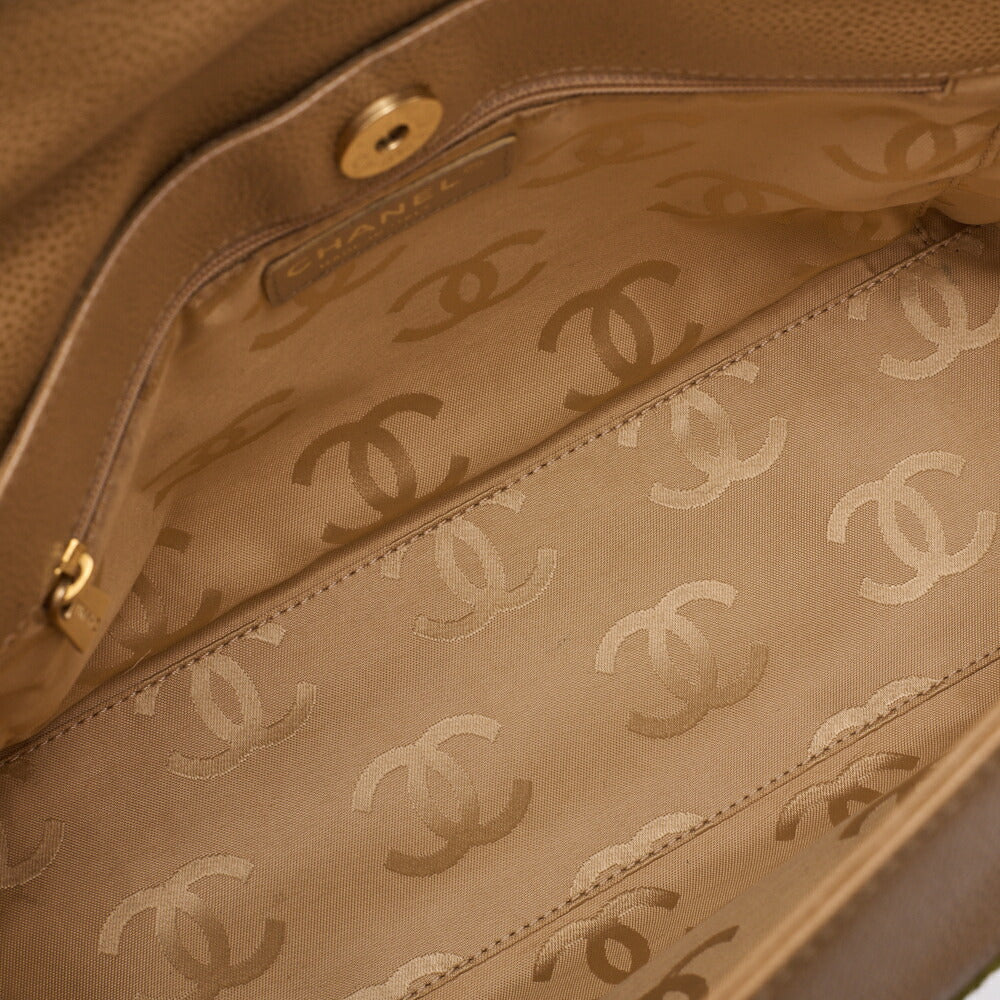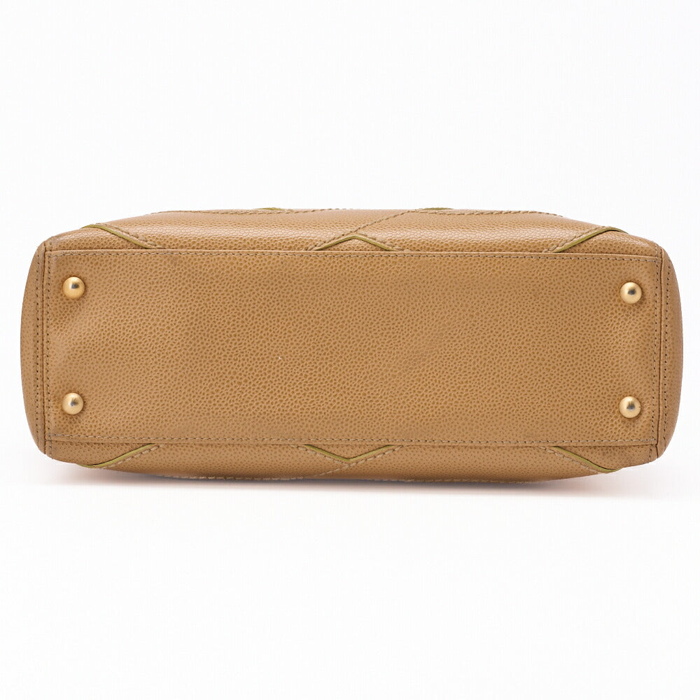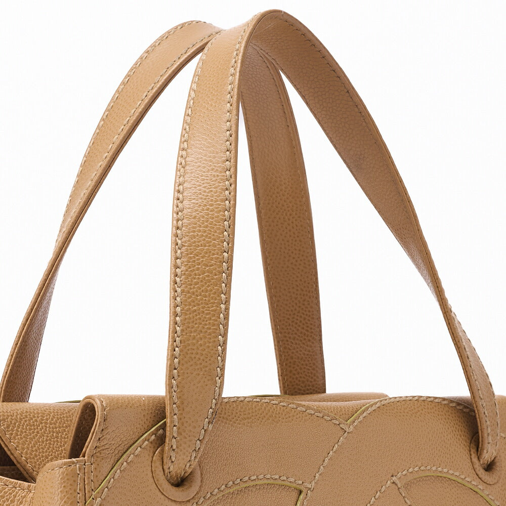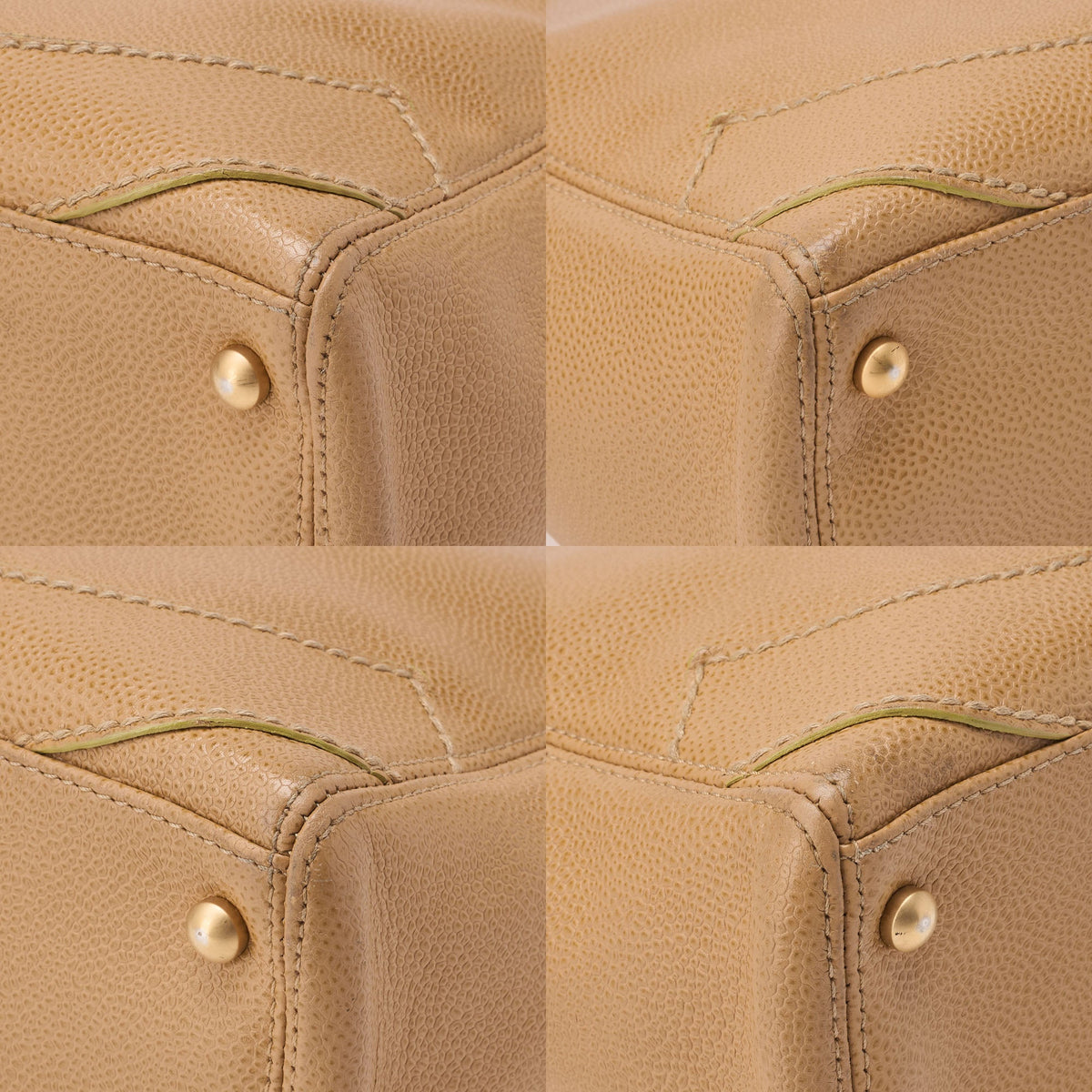 Gebrauchte Tragetasche, Wild Stitch Coco Mark, Kaviarhaut, Beige, goldfarbene Metallteile, gebraucht