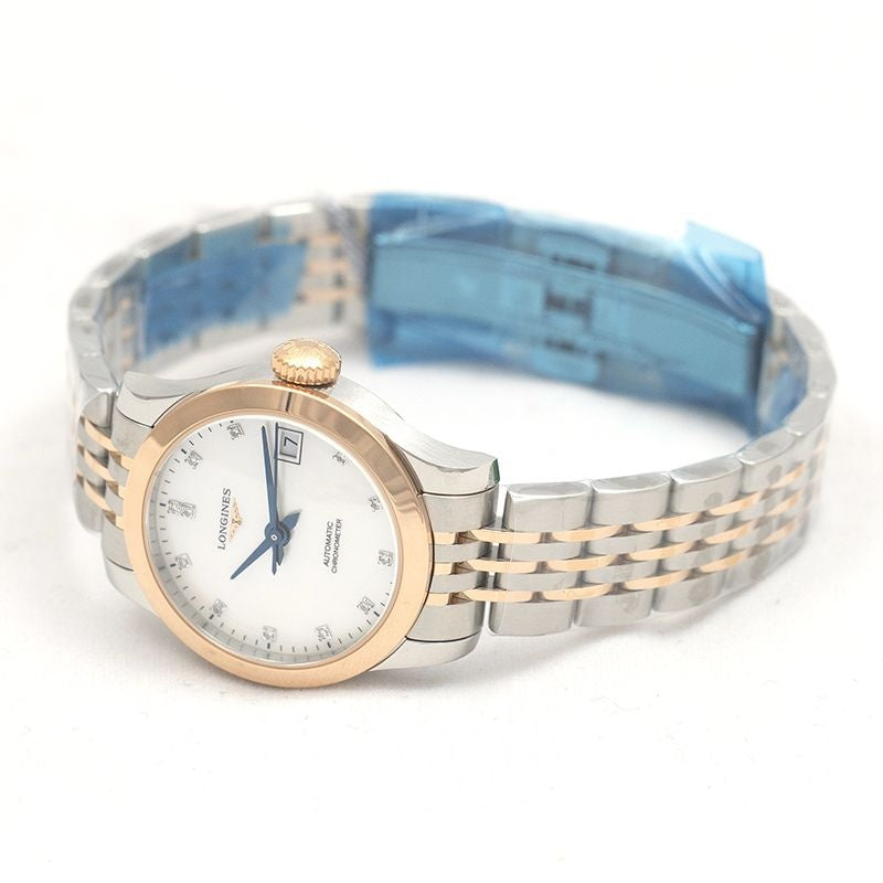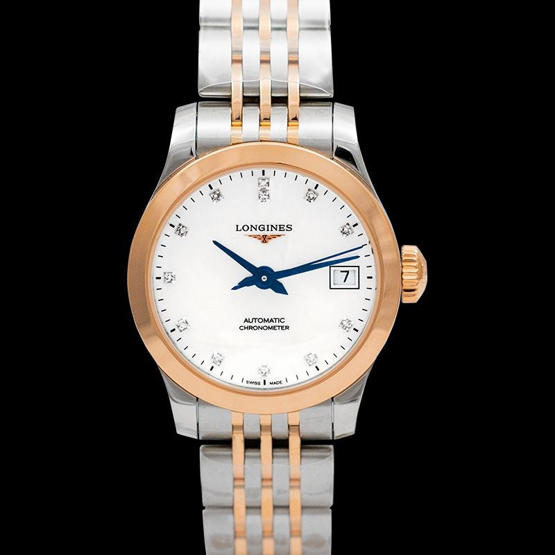 Record – 26,00 mm, weißes Perlmutt-Zifferblatt aus Edelstahl, Kappe aus 18 Karat Roségold 200 L23205877