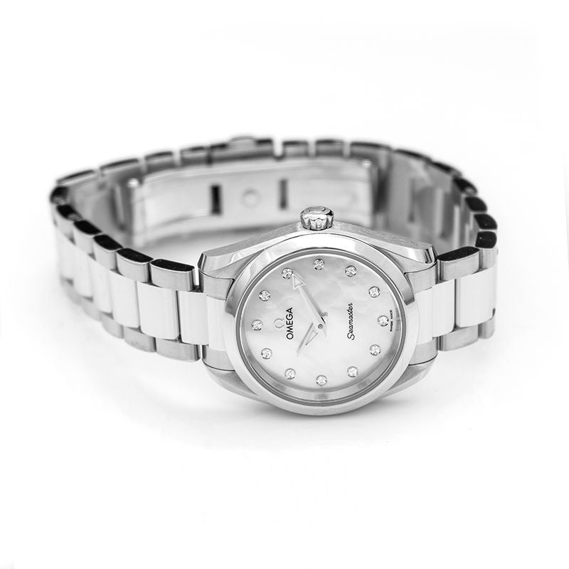 Seamaster 28 mm weißes Perlmuttzifferblatt aus Edelstahl 220.10.28.60.55.001