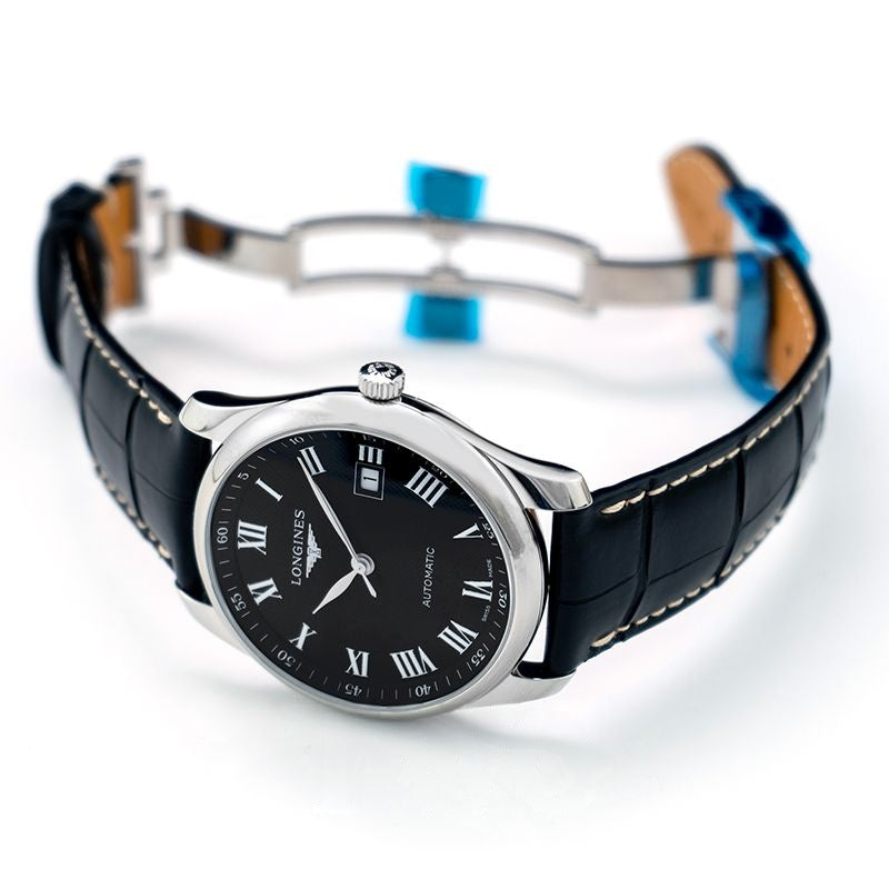 Die Longines Master Collection 40 mm schwarzes Zifferblatt aus Edelstahl L27934517